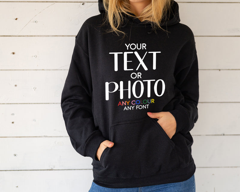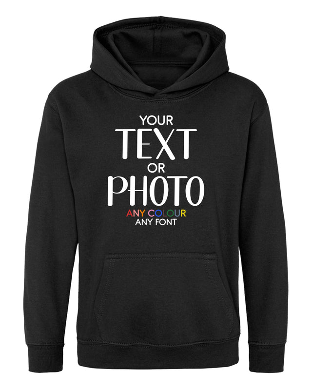 Custom Kids Hoodie - Personalised Photo & Text Design - Black Sweatshirt for Boys & Girls - Create Your Own Jumper Hoody