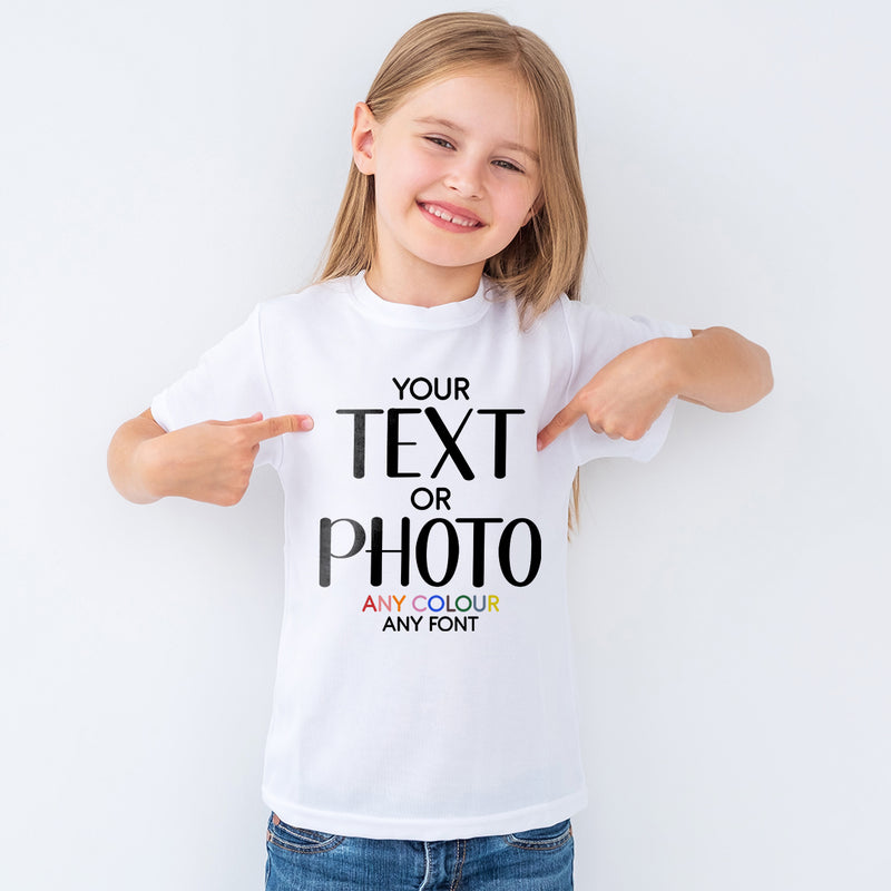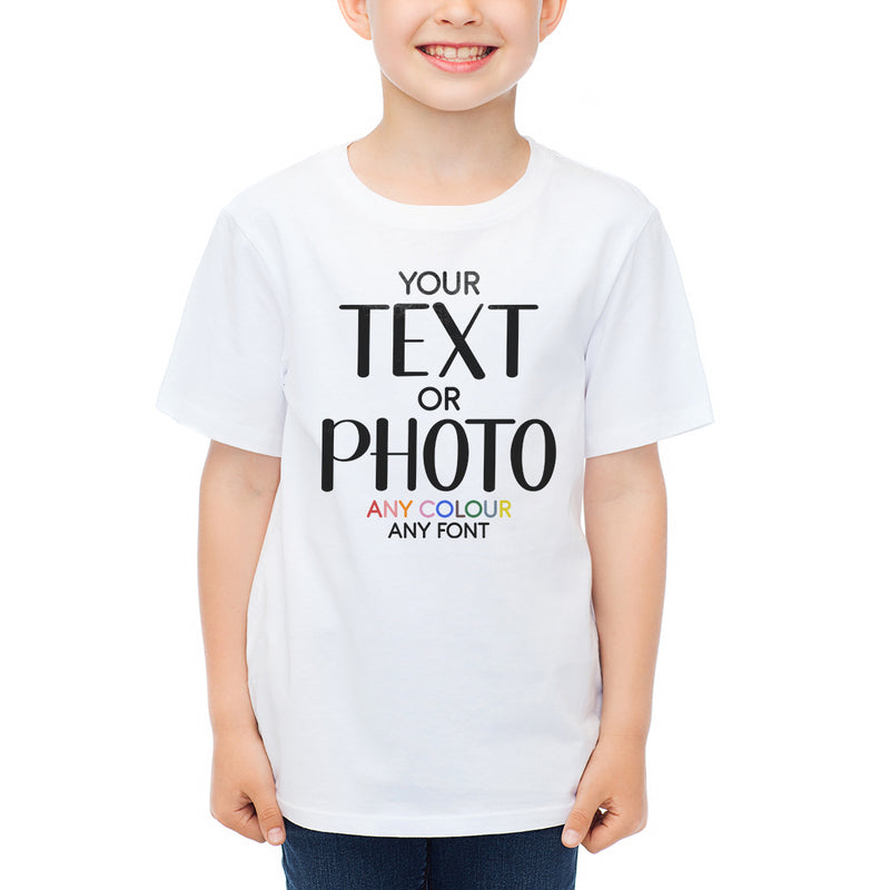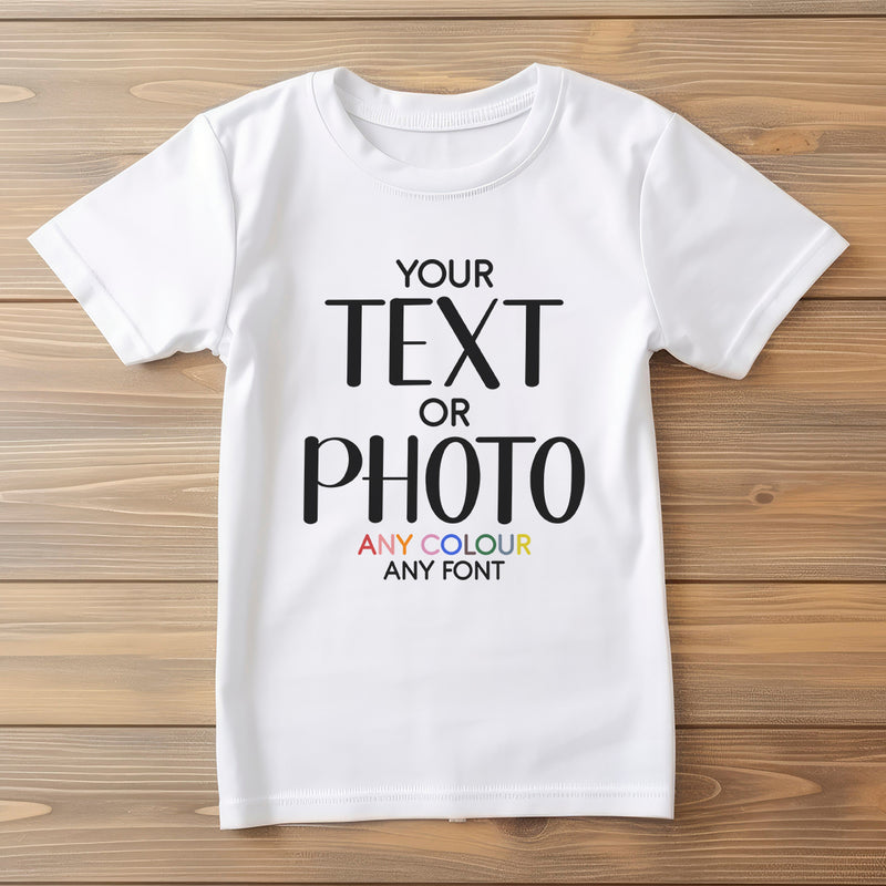 Custom Personalised Kids T-Shirt: Create Your Own Design with Any Text, Photo Print - Perfect for Boys & Girls