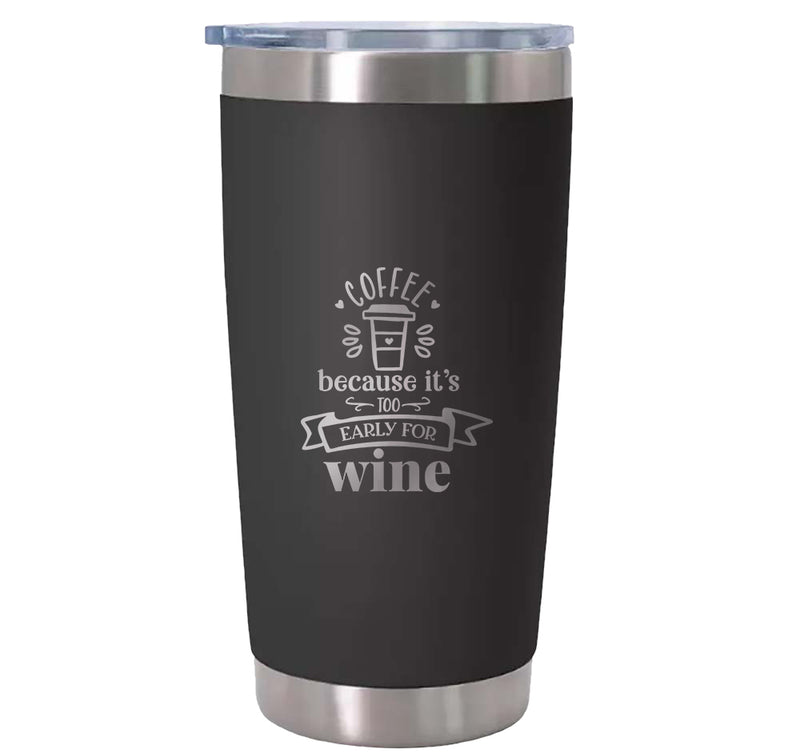 - Funny Coffee Mug - This funny coffee mug is a great gift for family and friends. Featuring a humorous reminder to drink coffee because it's too early to drink wine, this fun mug is perfect for anyone who loves coffee!