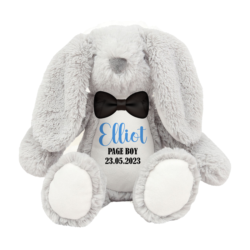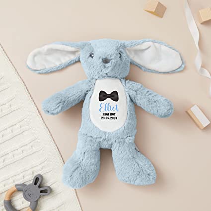 Looking for the perfect gift to make your little ones feel special on your big day? Look no further than our Flower Girl Bunny Wedding Personalised Teddy Gift! This adorable plush toy is the perfect way to say thank you to your flower girl or page boy for being a part of your special day.Our Flower Girl Bunny Wedding Personalised Teddy Gift is a soft and cuddly plush toy that measures 23cm in height. It comes with a personalised tummy that can be customised with the name of your flower girl or page boy, date of wedding and message making it a truly unique and special gift.Made from high-quality materials, this plush toy is designed to last and will provide your little ones with years of love and comfort. Whether they’re snuggling up with it at night or taking it on adventures during the day, our Flower Girl Bunny Wedding Personalised Teddy Gift is sure to become their new favourite companion.