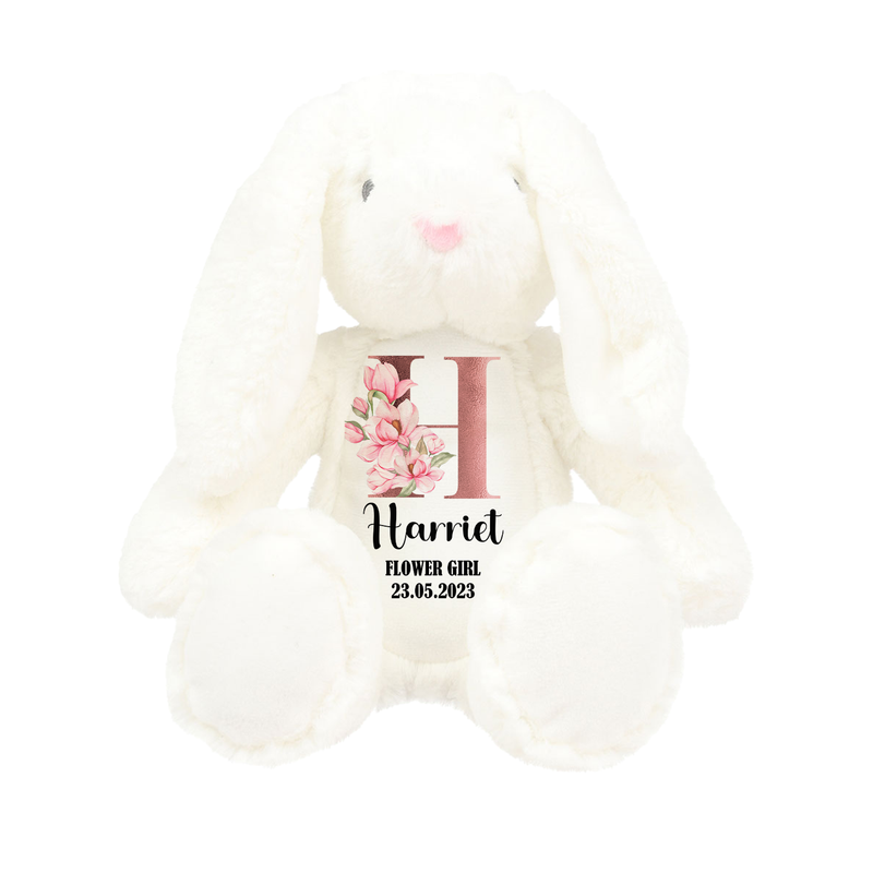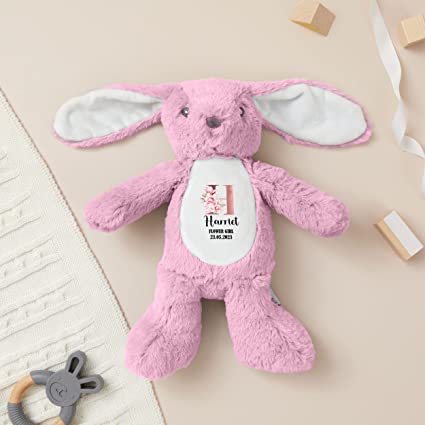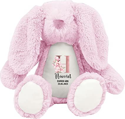 Hoolaroo Flower Girl Bunny Wedding Personalised Teddy Gift, Bridesmaid Proposal Page Boy Thank You Plush Soft Toy Kids 23cm
