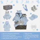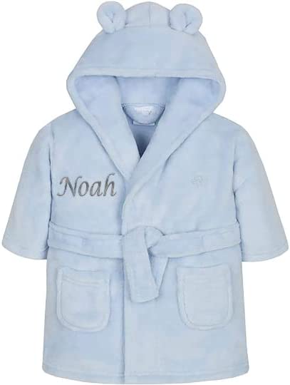 🐘 Personalised Baby Boy Gifts - The comforter and dressing gown can be personalised with the name and date of birth or it can be personalised with the last name for example "Baby Smith" and presented at a baby shower.