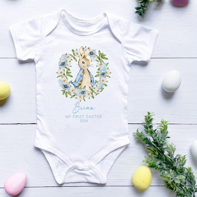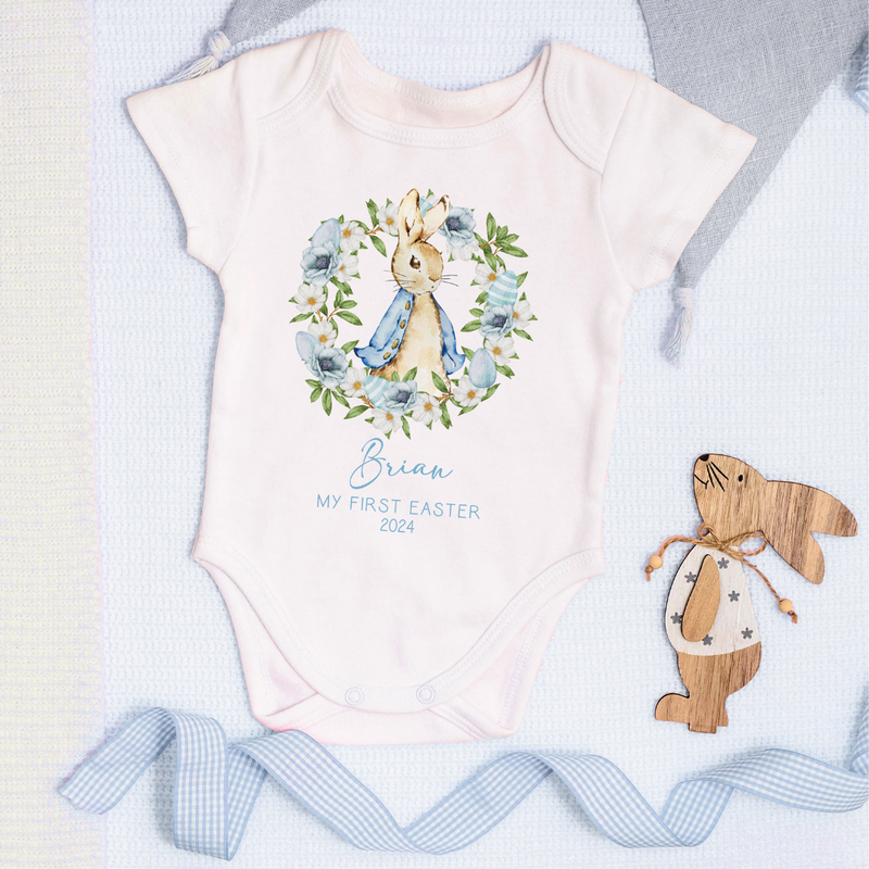 Hoolaroo Personalised Babygrow Baby Grow Boy Easter New Baby Gift Rabbit Blue Bodysuit Clothing