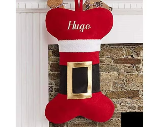 Hoolaroo Personalised Dog Christmas Stocking Embroidered With Name Xmas Santa Bone Shape Pet Stockings Bone