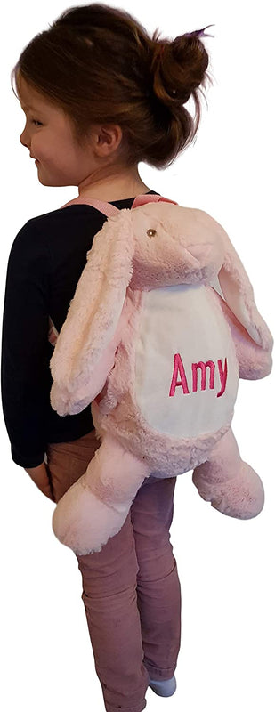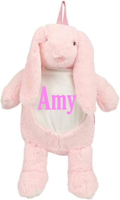 Hoolaroo Personalised Embroidered Floppy Bunny Pink Plush Backpack