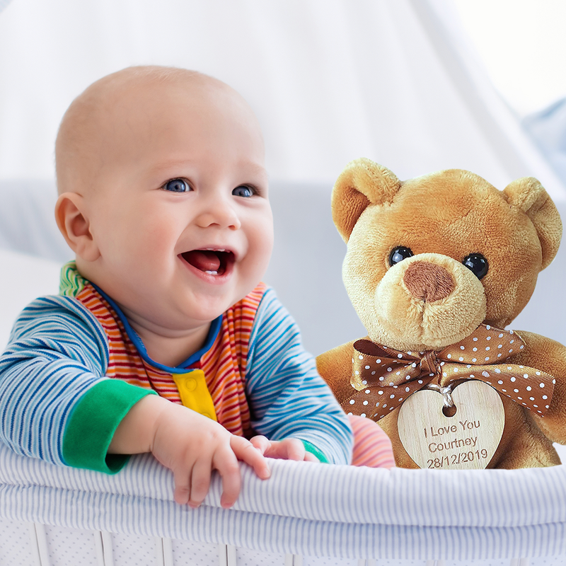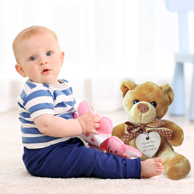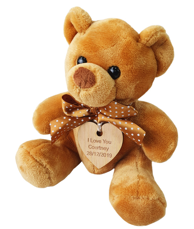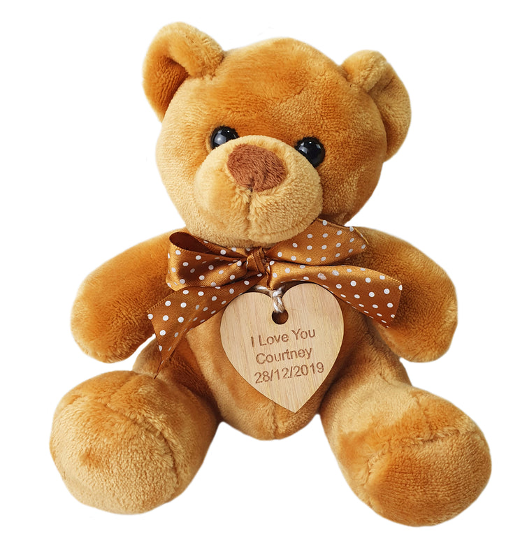- 🐻 PERSONALISED BEAR - Personalised with vintage wooden engraved tag around the neck as shown Any message can be engraved on the wooden heart tagwhich makes a lovely keepsake.