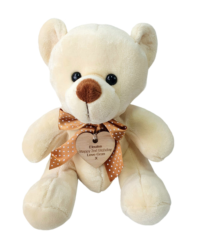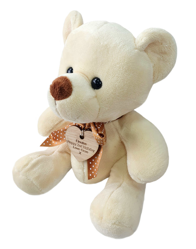 - 🐻 PERSONALISED BEAR - Personalised with vintage wooden engraved tag around the neck as shown Any message can be engraved on the wooden heart tag which makes a lovely keepsake.