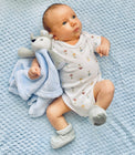 - ♥️ Give The Perfect Newborn Baby Gift, This Elegantly Shaped Baby Boy Gift Box Consists Of Light Blue Personalised Embroidered Deer Fawn Comforter 30cm, Super Soft Fleece Blanket 90x75cm, Pair Of Knitted Booties, Size When Wrapped 20x24x11cm.