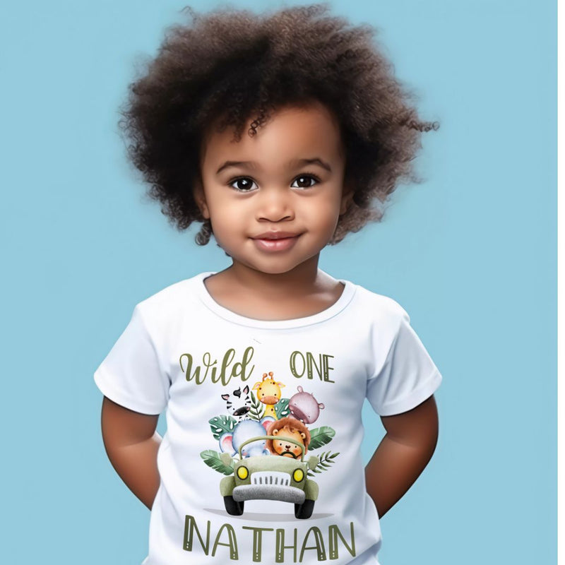 Personalised 1st Birthday T-Shirt for Boys & Girls - WILD ONE Jungle Design Age 1