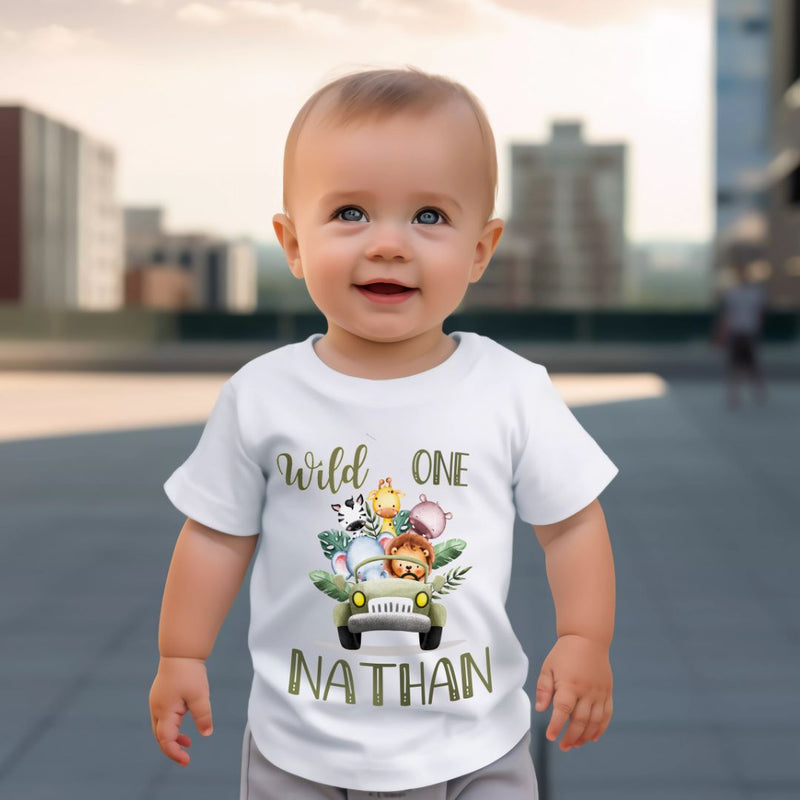 π¦ This Personalised 1st Birthday T-Shirt β WILD ONE Jungle Design, for Boys and Girls Age 1 is the perfect way to make your child's special day even more special. It is sure to be a treasured keepsake for years to come.
