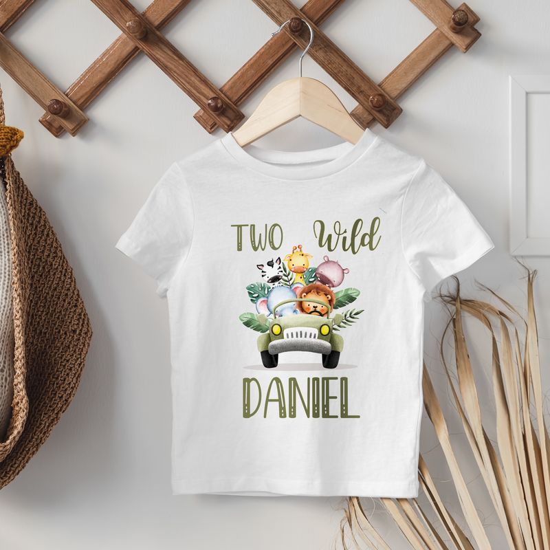 Personalised 2nd Birthday T-Shirt for Boys & Girls - TWO WILD Jungle Design Age 2