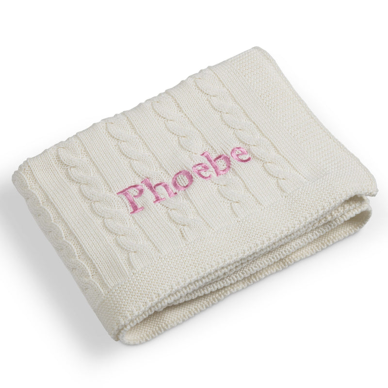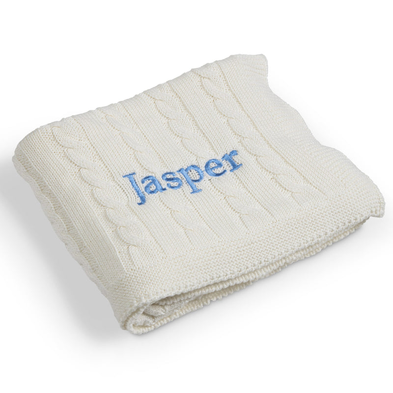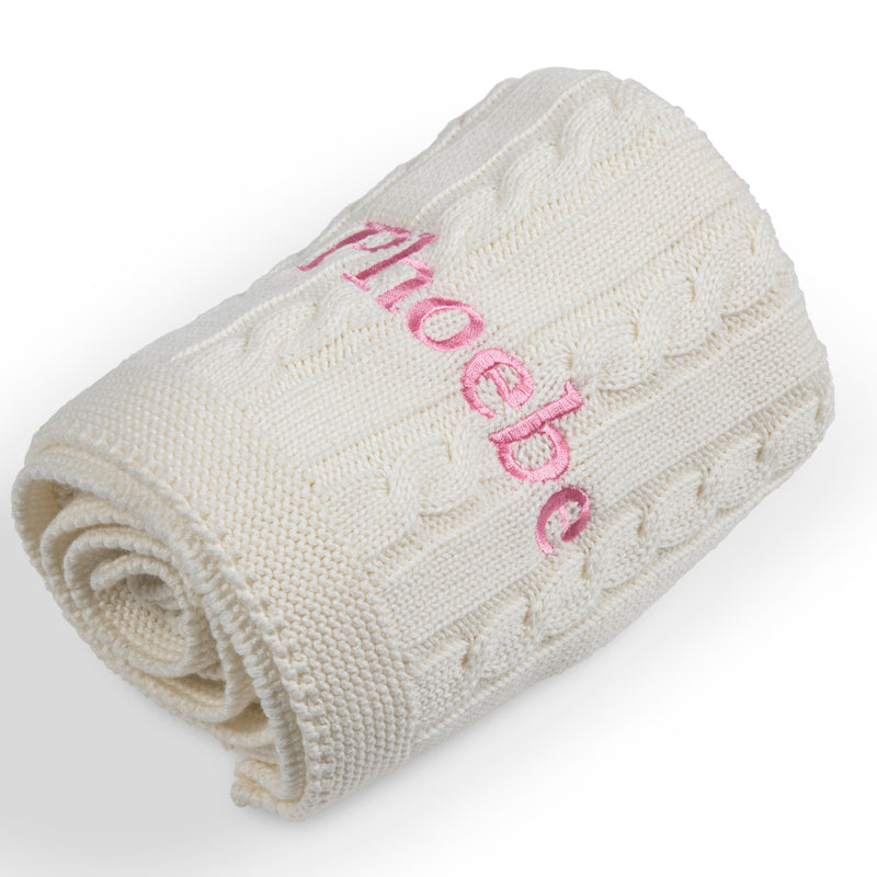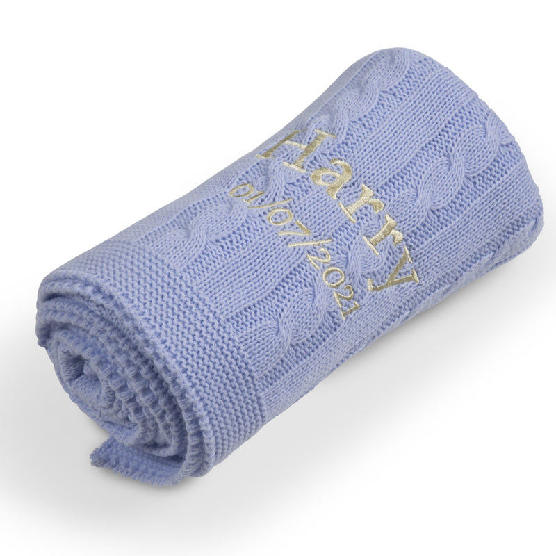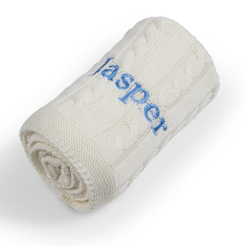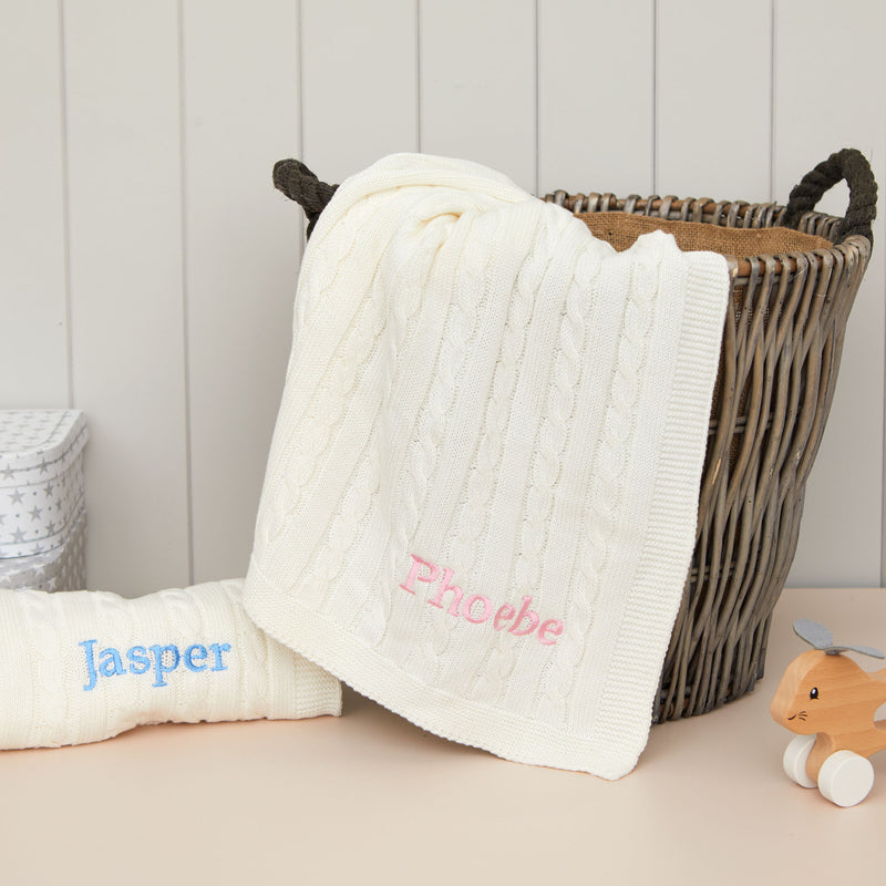 - Personalise This Beautiful Soft Knitted Blanket With A Child’s Name Embroideredto Make This The Perfect Gift For A Baby Shower, Christening Or For Any New Parent.