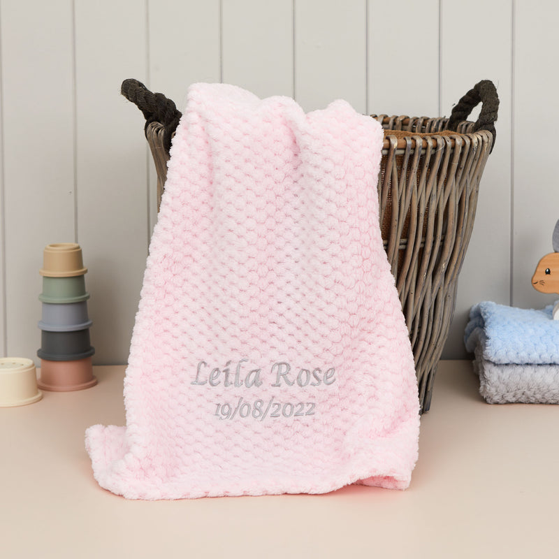 - Personalised baby blanket with name and date of your choice, This blanket is embroidered with your chosen details to make the perfect customized baby blanket, a lovely personalised baby gift