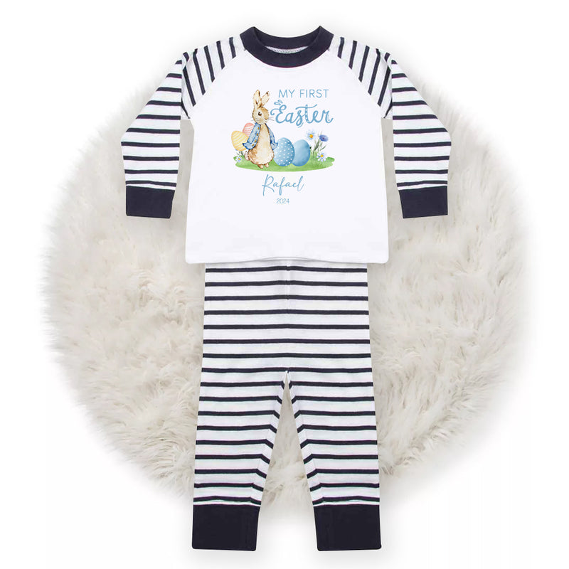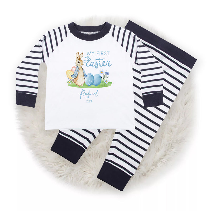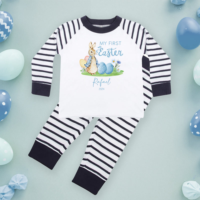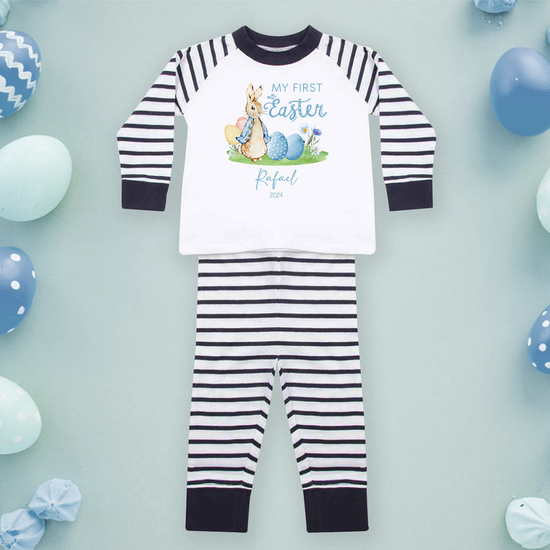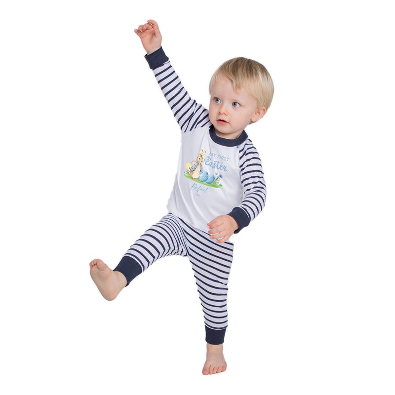 Personalised Baby Boy Pyjamas My 1st Easter 6-12 Months Rabbit Blue Outfit Clothing Stripe PJs