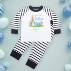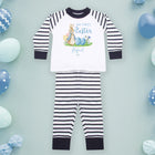 Celebrate your baby boy's first Easter with our Personalised Baby Boy Pyjamas. Designed specifically for the festive season, these pyjamas are perfect for babies aged 6-12 months. The outfit is adorned with a charming rabbit design, symbolising the joy and innocence of Easter, and is set against a soothing blue backdrop, making it an eye-catching piece in your baby's wardrobe. The pyjamas feature a stripe pattern, adding a playful touch to the overall design. Crafted from soft, breathable fabric, these PJs ensure your little one's comfort throughout the night. The material is gentle on your baby's delicate skin, preventing any irritation or discomfort. What sets these pyjamas apart is the personalisation feature. You can add your baby's name or initials, making this outfit truly unique and special. This personal touch not only adds to the charm of the outfit but also makes it a wonderful keepsake to cherish your baby's first Easter memories. These personalised pyjamas are not just clothing; they are a celebration of your baby's first milestones. They offer the perfect blend of comfort, style, and sentimentality. Whether it's for your own little one or a gift for a loved one, these pyjamas are sure to bring a smile to any parent's face. In essence, our Personalised Baby Boy Pyjamas are more than just an outfit; they are a celebration of life's precious moments. They offer the perfect blend of comfort, style, and sentimentality, making them a must-have for your baby's first Easter.