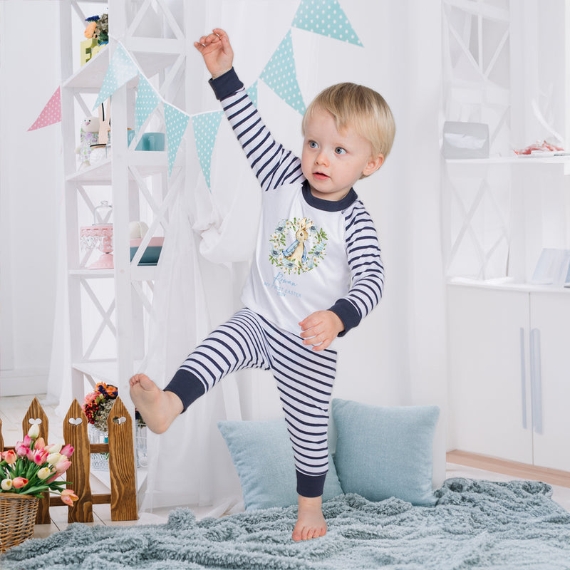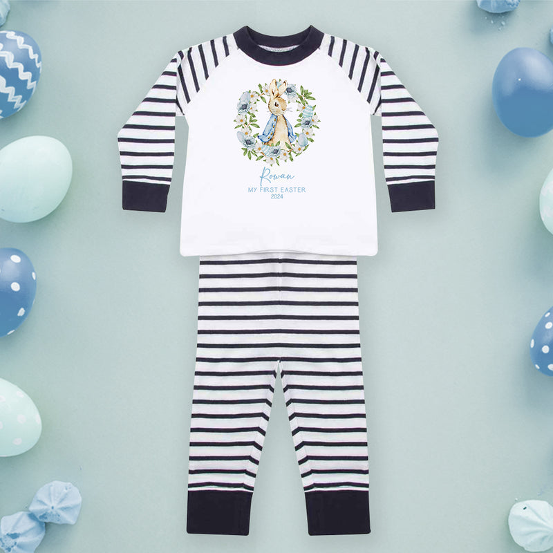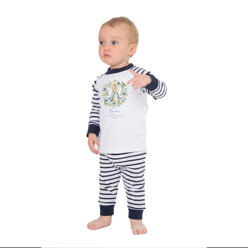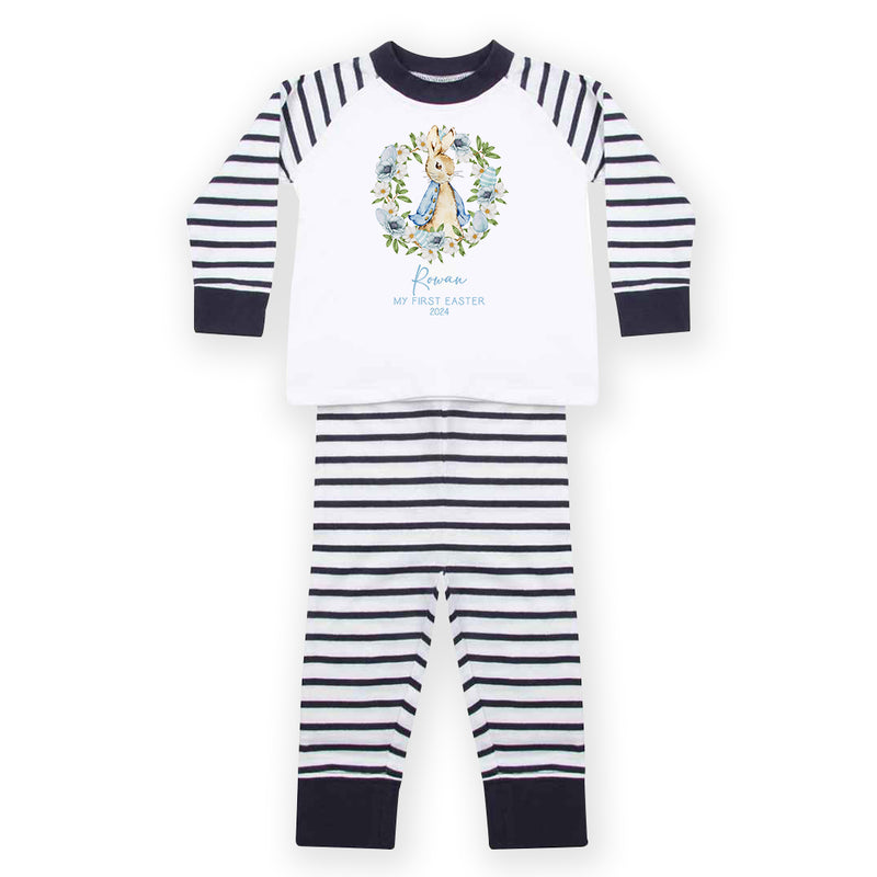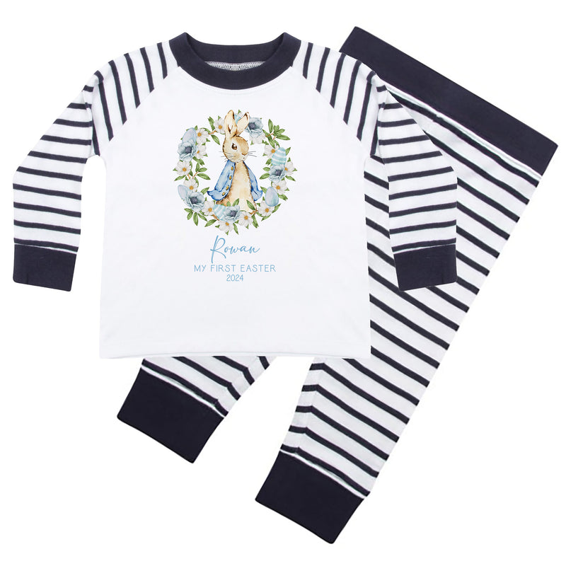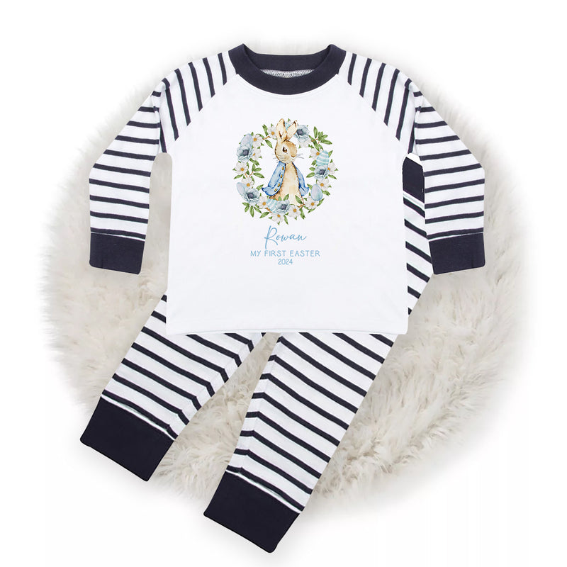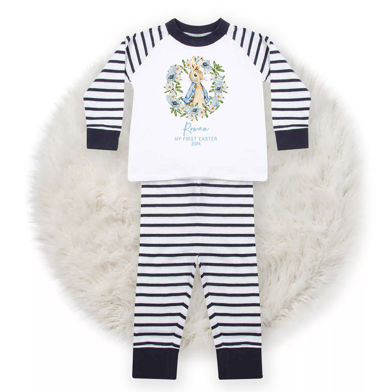 Personalised Baby Boy Pyjamas - My 1st Easter 6-12 Months Rabbit Blue Outfit Clothing Stripe PJs