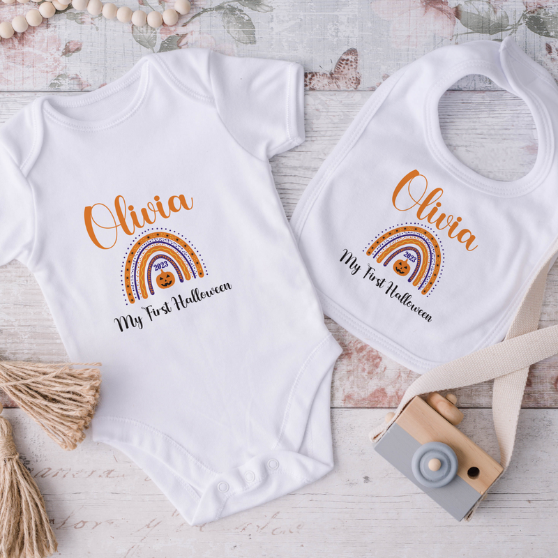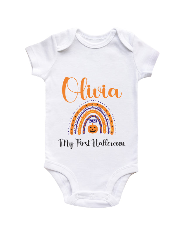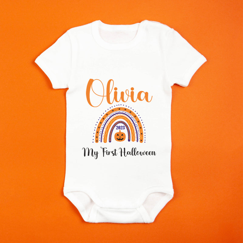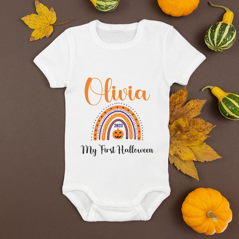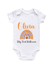 Personalised Baby First Halloween Rainbow Baby Grow Bodysuit 1st Halloween Outfit Cotton BabyGrow Vest Girl Boy Unisex Gift Name