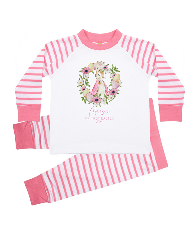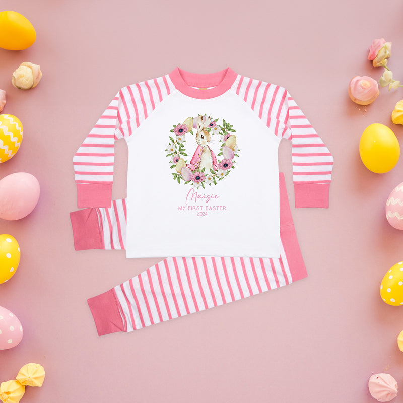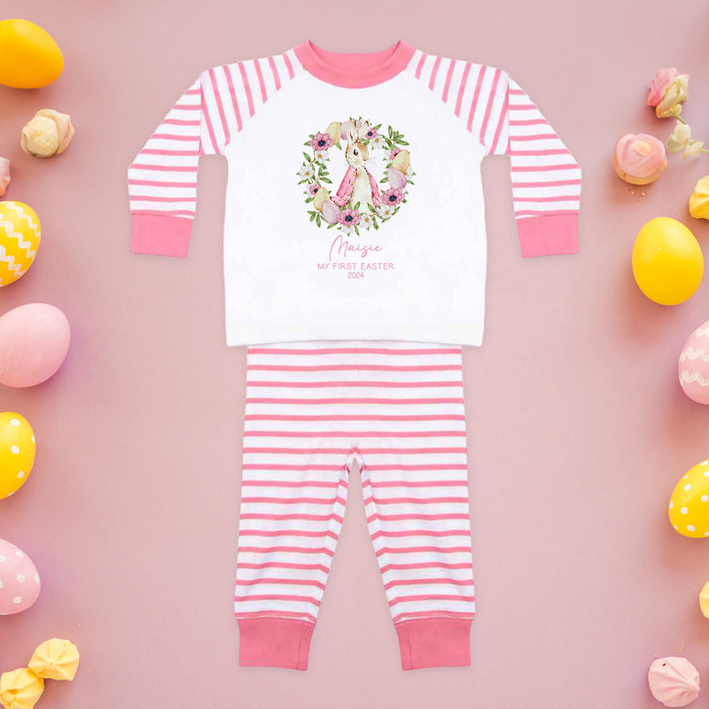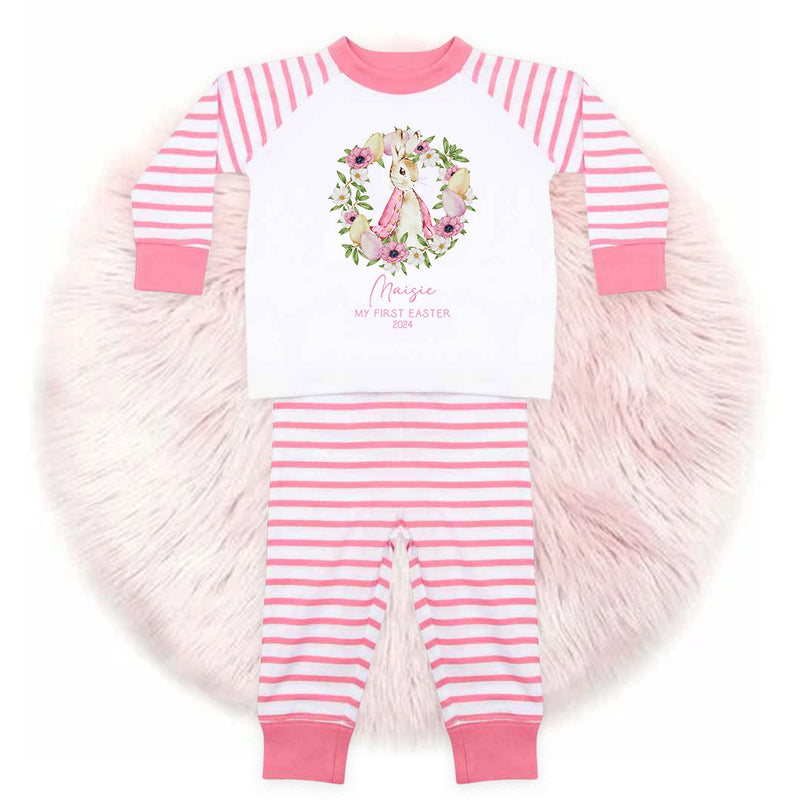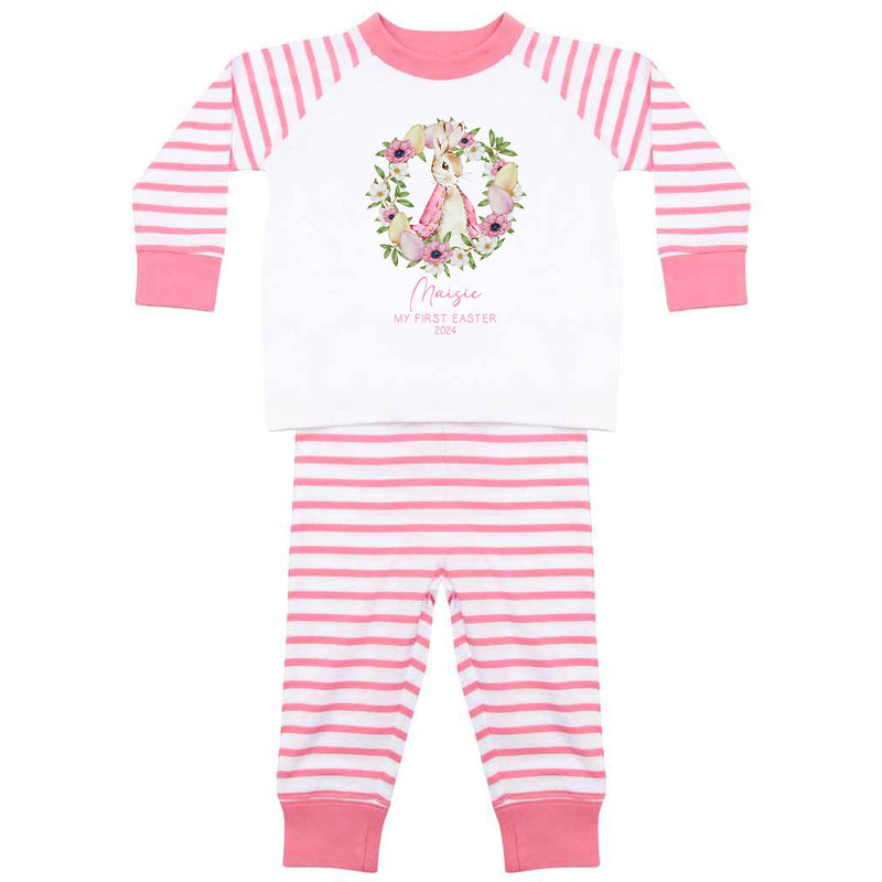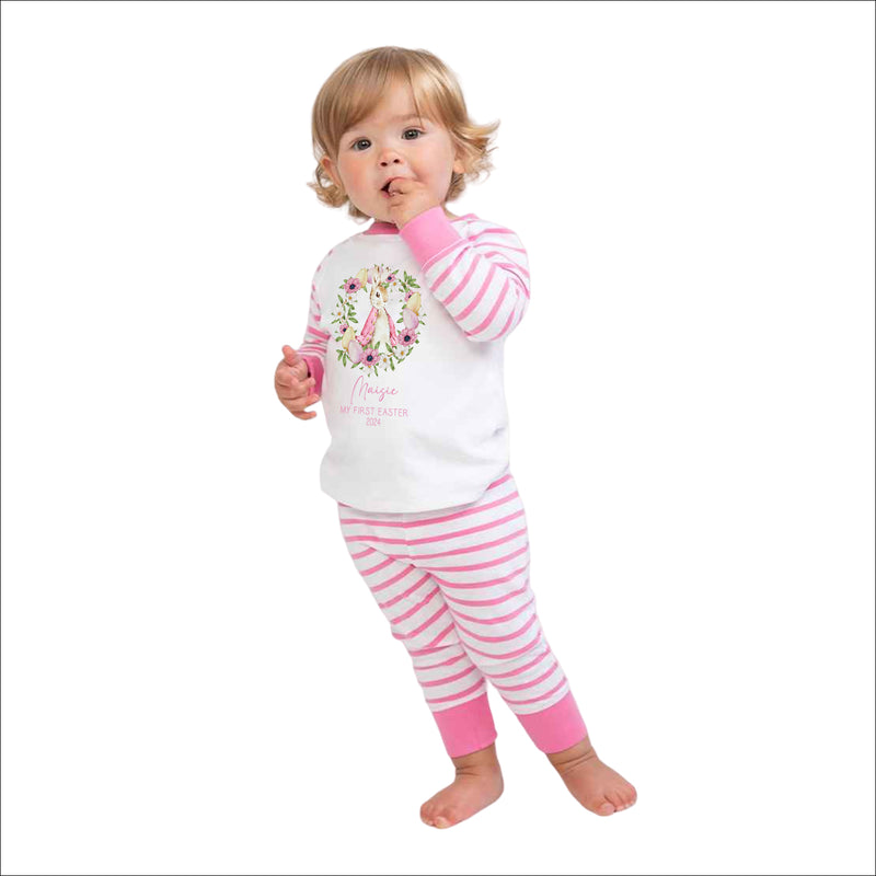Personalised Baby Girl Pyjamas - My 1st Easter 6-12 Months Rabbit Pink Outfit Clothing Stripe PJs