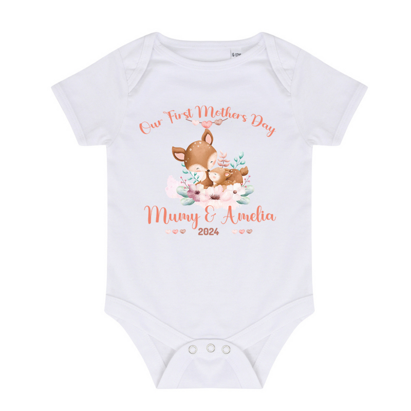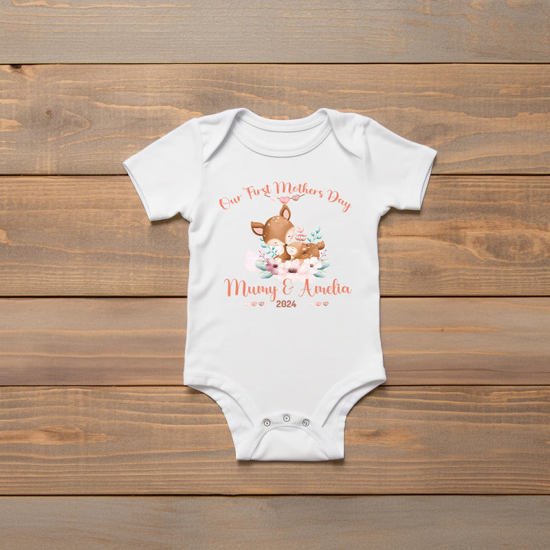 Personalised BabyGrow 1st Mother's Day Together Baby Deer and Mummy Design Newborn, 0-12 Months Vest
