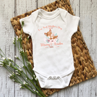 Celebrate the joy of your first Mother's Day with our Personalised BabyGrow, a perfect keepsake to cherish this special occasion. This adorable vest is designed for newborns and babies aged 0-12 months, ensuring a snug and comfortable fit for your little one. The BabyGrow features a heartwarming Baby Deer and Mummy design, symbolising the tender bond between mother and child. The design is meticulously crafted, with attention to detail that brings the characters to life, making it a delightful sight for both you and your baby. Made from premium quality, soft and breathable fabric, the BabyGrow ensures maximum comfort for your baby's delicate skin. It's easy to wear and remove, thanks to its practical snap closure design. The fabric is also durable and machine-washable, making it easy for busy moms to maintain. What sets this BabyGrow apart is the personalisation feature. You can add your baby's name or a special message, making it a truly unique piece. The personalisation is done with high-quality, non-toxic inks that are safe for your baby and won't fade away after washes. This Personalised BabyGrow is not just a piece of clothing; it's a memento of your baby's first year and your first Mother's Day. It's a beautiful way to capture these precious moments, making it a great gift for new moms or a keepsake for yourself. In essence, this Personalised BabyGrow offers a blend of comfort, style, and sentimental value. It's more than just a baby vest; it's a celebration of motherhood and the special bond you share with your baby.