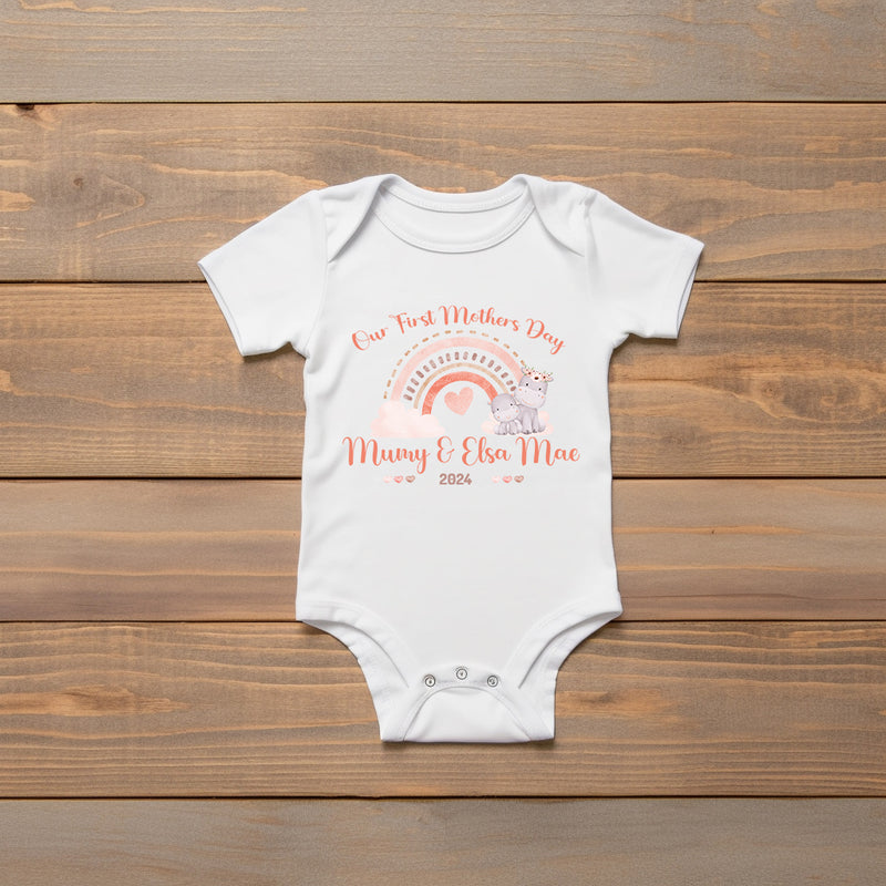 Personalised BabyGrow 1st Mother's Day Together Baby Hippo Rainbow Design Newborn, 0-12 Months Vest