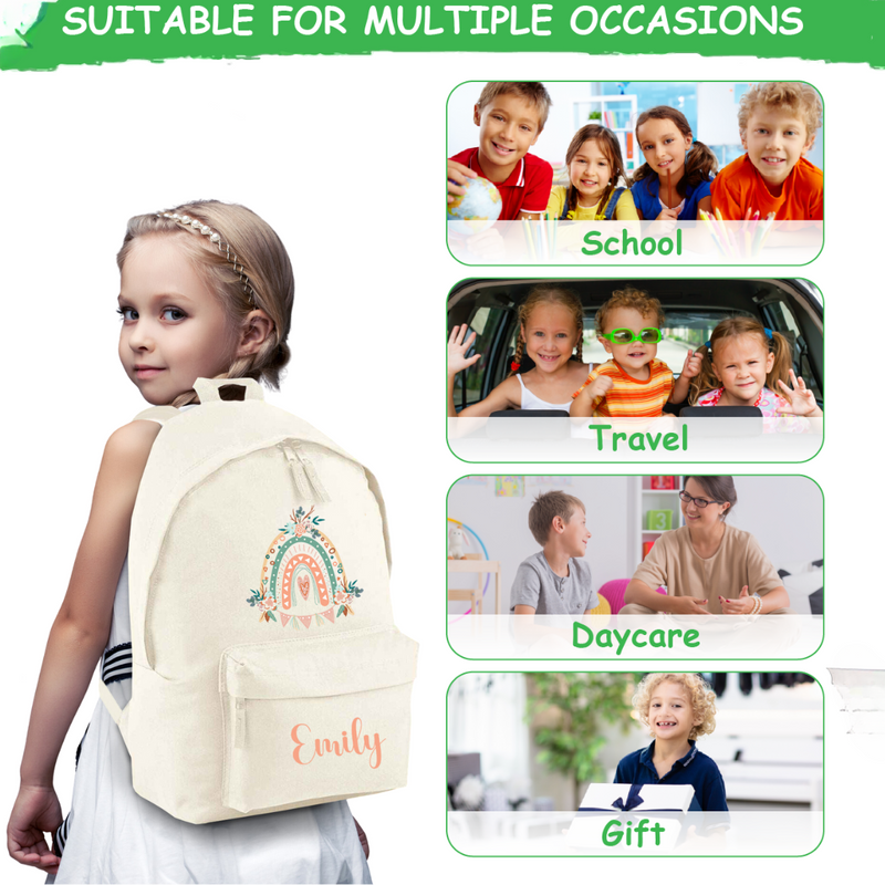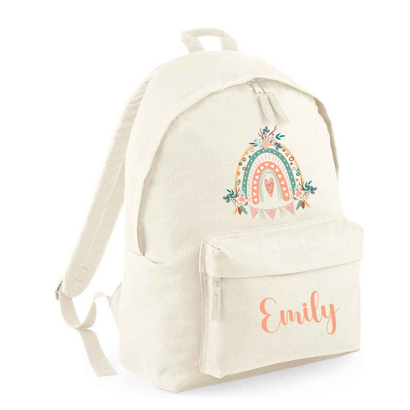 Personalised Backpack For Girls Personalised Rucksack Bag Pack Kids Personalised School Bag Nursery Bags Childrens Baby Toddler Rainbow Design Boho Cream Teenage Older Younger Adults Large 42cm
