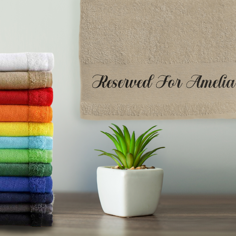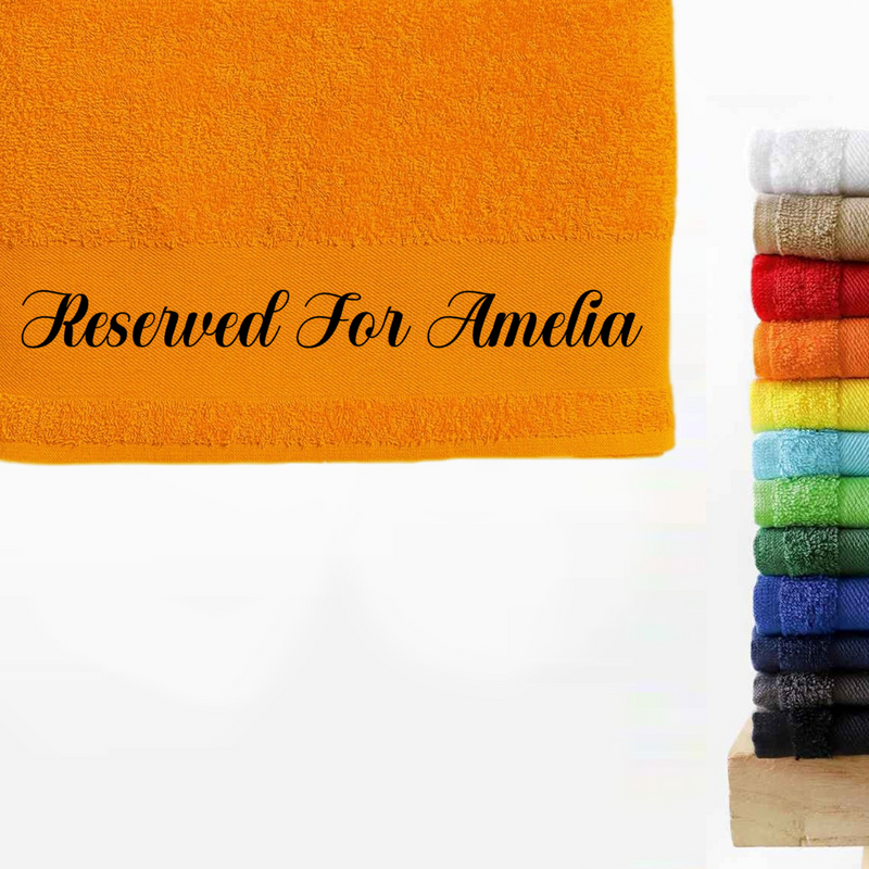 PERSONALISED TOWEL : This Beach Towel features a custom Reserved For print with bold colours, giving you a feeling of exclusive privacy on the beach. REVERSIBLE DESIGN: Get 2 looks in 1 towel with one side displaying a printed development and the other side in solid vibrant colour. PREMIUM QUALITY: Made with 100% luxury cotton, this beach towel is extremely soft and comfortable. That ensures durability and longest lasting use. LARGE SIZE: This beach towel measures 140 x 70 cm providing you with plenty of coverage for comfortable relaxing in the sun. GREAT GIFT: Want to surprise someone with the perfect beach getaway gift? We got you covered! This unique and vibrant beach towel is the perfect choice for anyone.