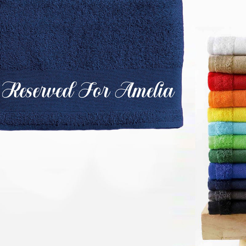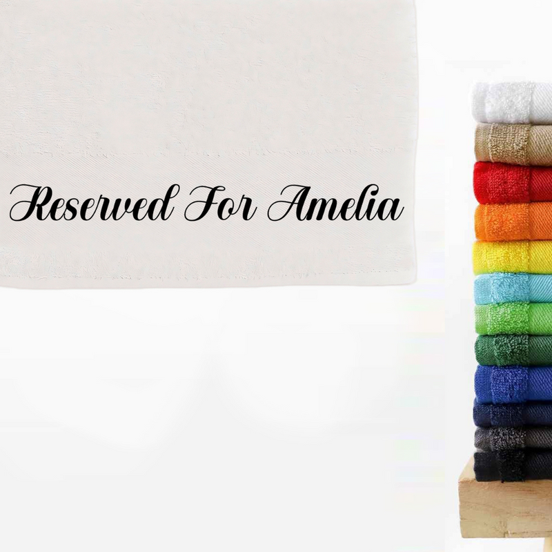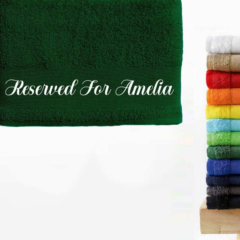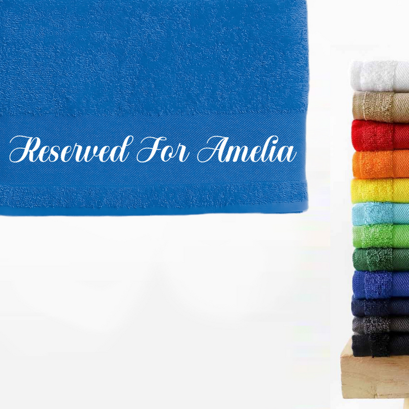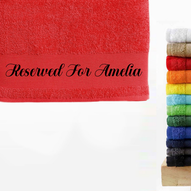 Personalised Beach Towel For Adults Women Men 10 Colours, Printed Reserved For, Holiday Sunbed Chair Beach Towel Summer Bath Sheet 140 x 70cm