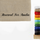 Create memories that last with this Personalised Beach Towel perfect for relaxing and making a statement on the beach. Whether for yourself or as a unique gift, this beach towel will be remembered for its stylish design and bold colour. Made with heavy duty 100% cotton, this luxurious beach towel is extremely soft and comfortable and ensures longevity for long trips and repeated uses. The reversible design gives you two looks in one towel – one side with a simple yet elegant printed development, and the other side in solid, vibrant colour giving you long lasting creativity. The customised Reserved For print gives you a feeling of exclusivity and privacy that will be truly unique in any place. The large size of 140 x 70 cm provides you with plenty of coverage as you relax in the sun enjoying every precious moment.