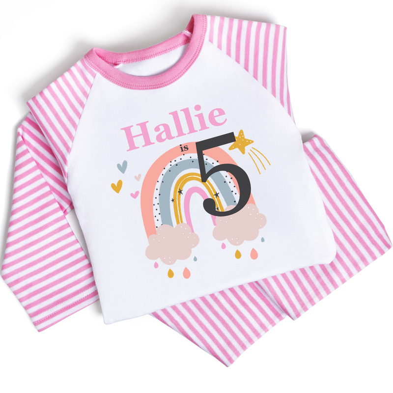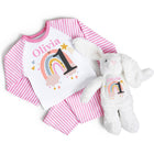 Personalised Birthday Gift Pink Rainbow Pyjamas + Bunny Teddy Bear Gift Set Present For Girl Age 1 2 3 4 5