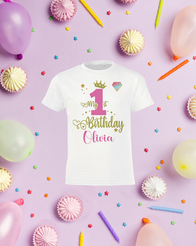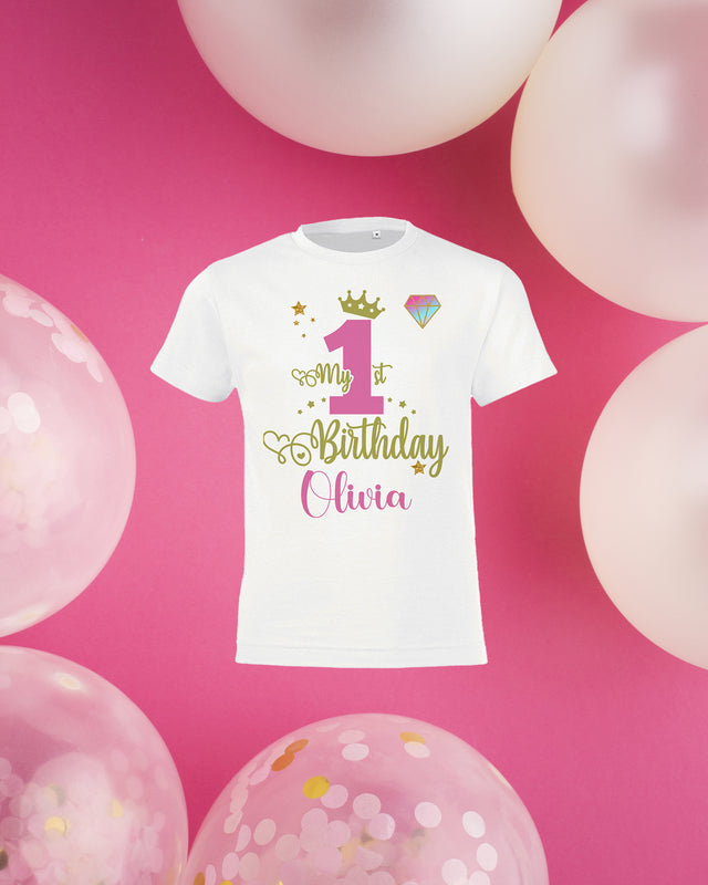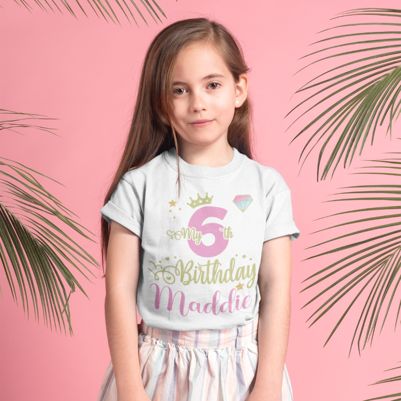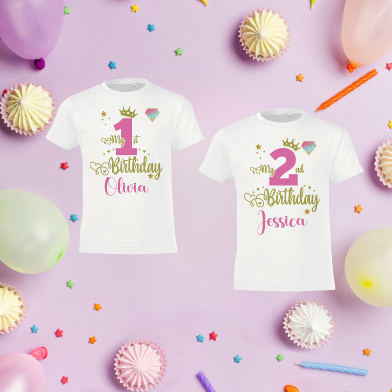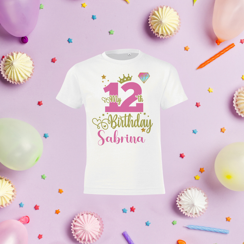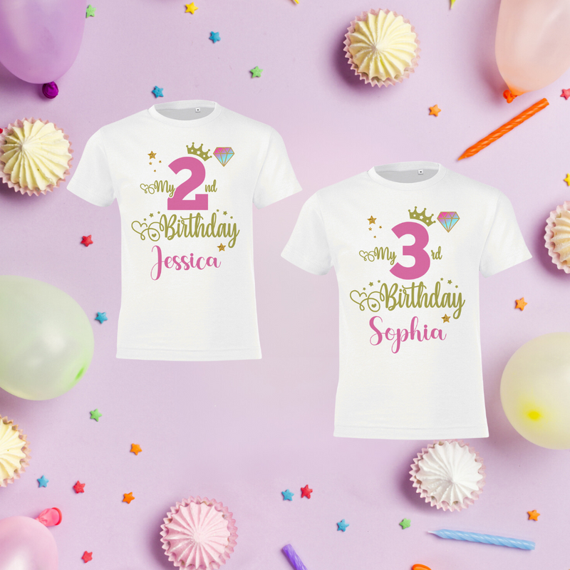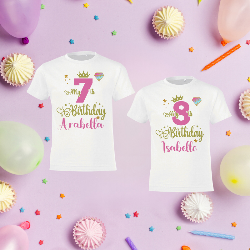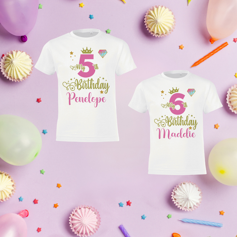 Personalised Birthday T-Shirt for Girls Pink Princess Top 1st 2nd 3rd 4th 5th 6th 7th 8th 9th 10th 11th 12th Party Outfit