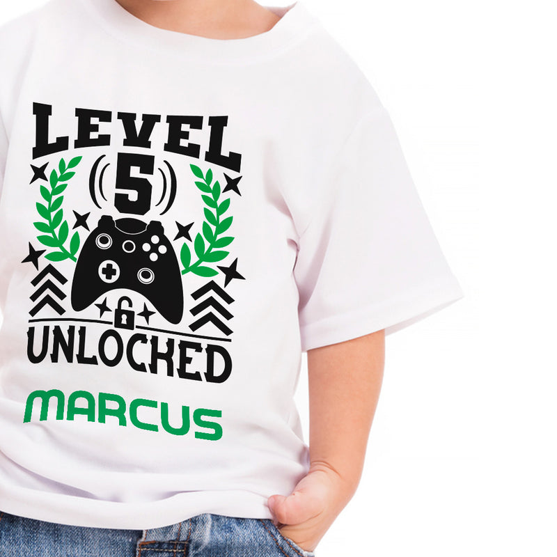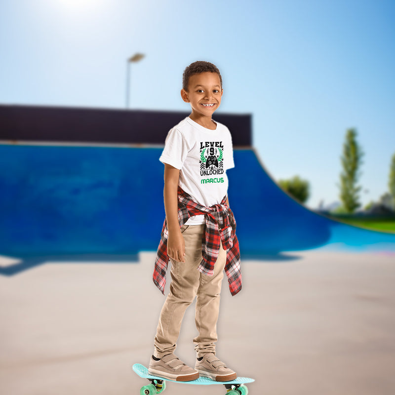 Personalised Birthday T-Shirt for Kids - Level 9 Unlocked: Funny Video Gamer for Boys Gaming Party Gift - Age 6-11