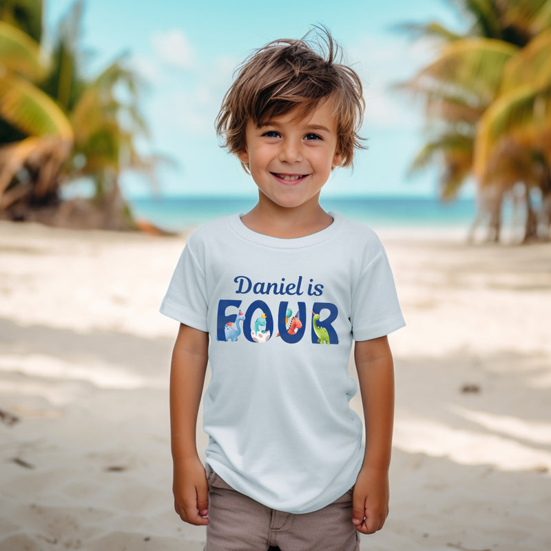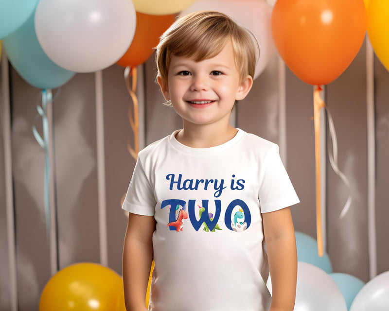 Make your little one's 1st, 2nd, 3rd, or 4th birthday extra special with this adorable Personalised Dinosaur Birthday T-Shirt. Crafted from high-quality material, this custom-made top is the perfect outfit for your child's birthday party. The vibrant design and personalised touch will make your little boy stand out and feel like a superstar on his special day.
