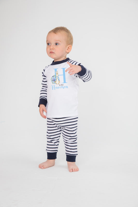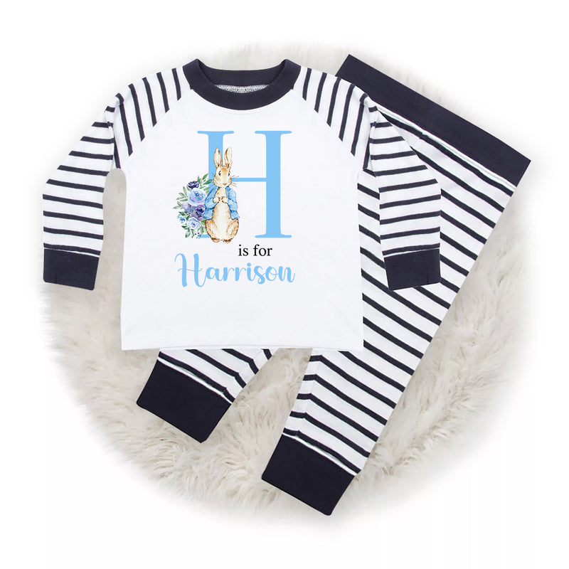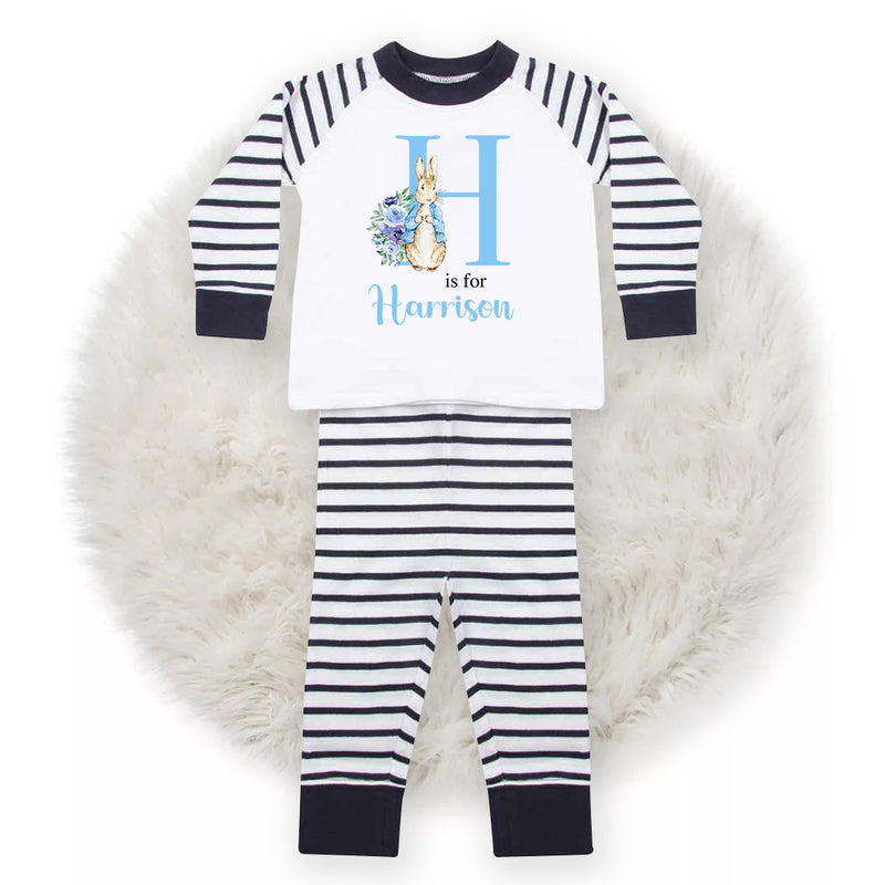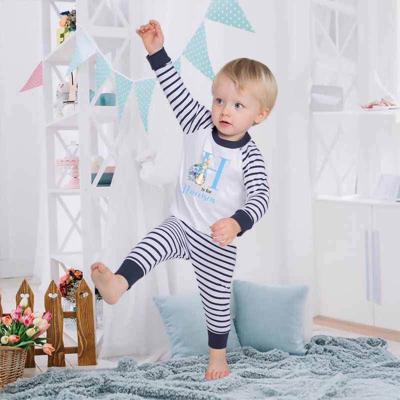 Personalised Blue Bunny Rabbit Pyjamas for Baby and Toddler Boys with Name - Cute PJs for Boys - Unique Baby Gift