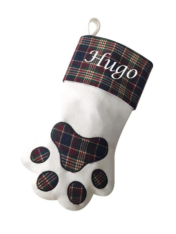 Personalised Christmas Dog Stocking Tartan Paw Design with Name
