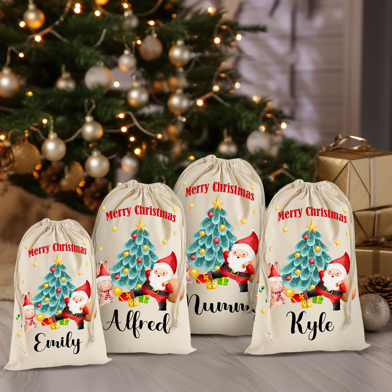 🎅Santa & Tree Design – Each sack is finely detailed with a unique Santa and Christmas Tree design, perfect for the holiday season and beyond.
