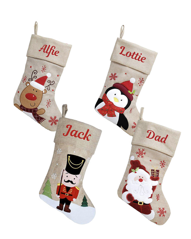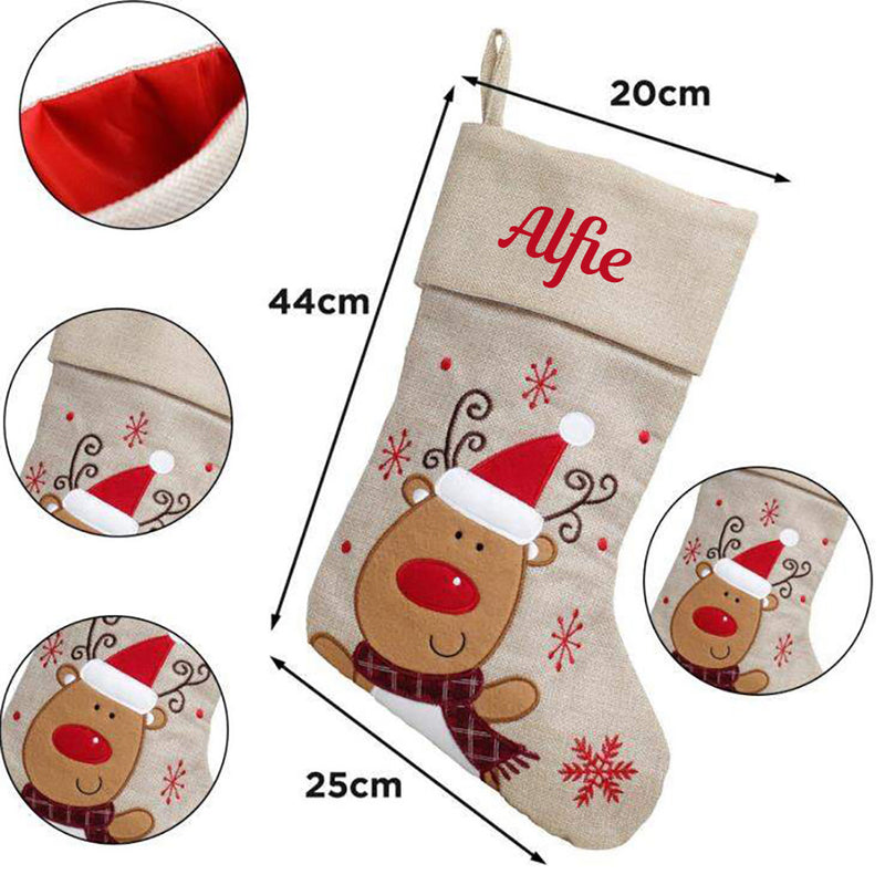 Personalised Christmas Stockings Xmas Stockings Hessian to Hang on Fireplace Traditional Family Kids Adults