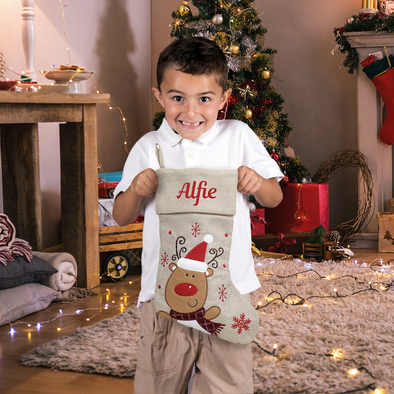 These stockings are available in a range of sizes, so you can find the perfect fit for everyone in the family, from kids to adults. They are made from high-quality hessian fabric, making them durable and long-lasting. Plus, they are personalised with your family name, making them a unique and special addition to your home.