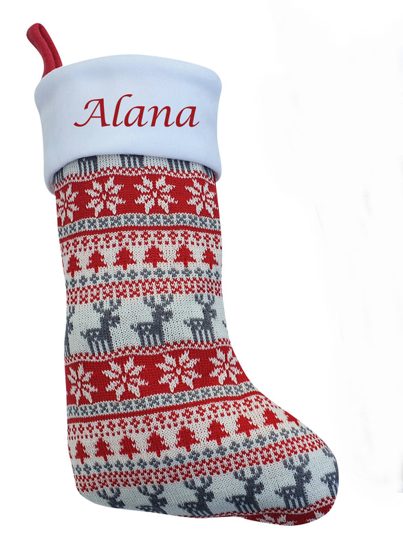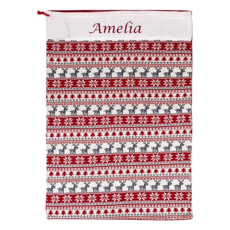 Personalised Christmas Sack & Matching Stocking set - Nordic Knit Red and Silver design.