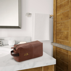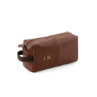 Personalised Embroidered Mens Faux Leather Wash Bag with Strap Brown - Mens Vegan Leather Toilet Bag Embroidered with Gold Initials Travel Gift Dad Fathers Day