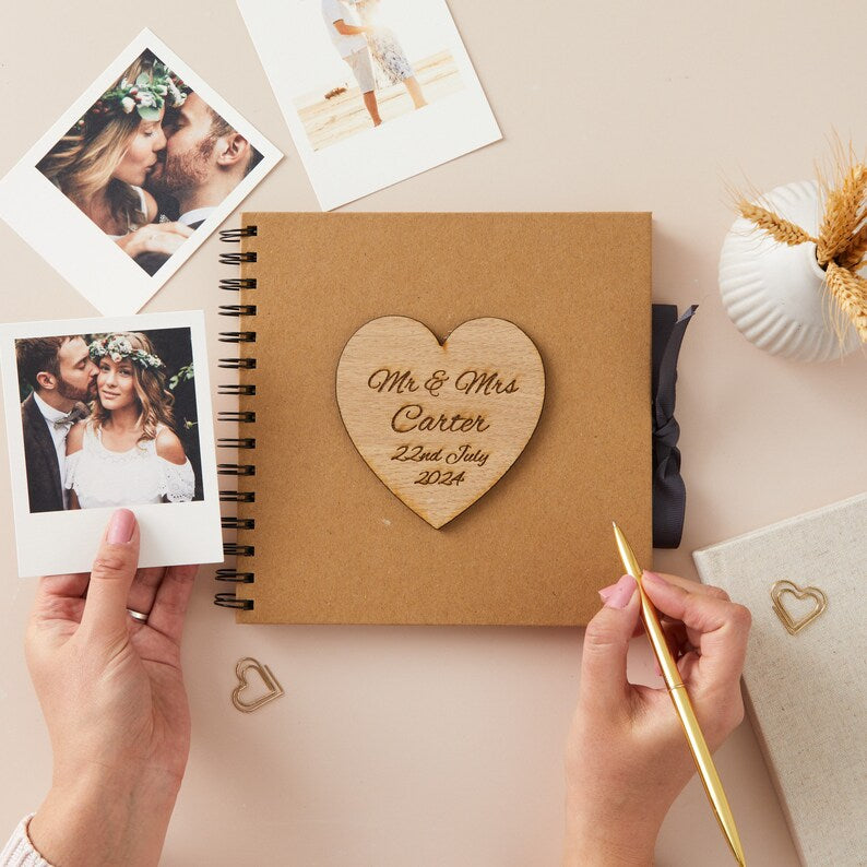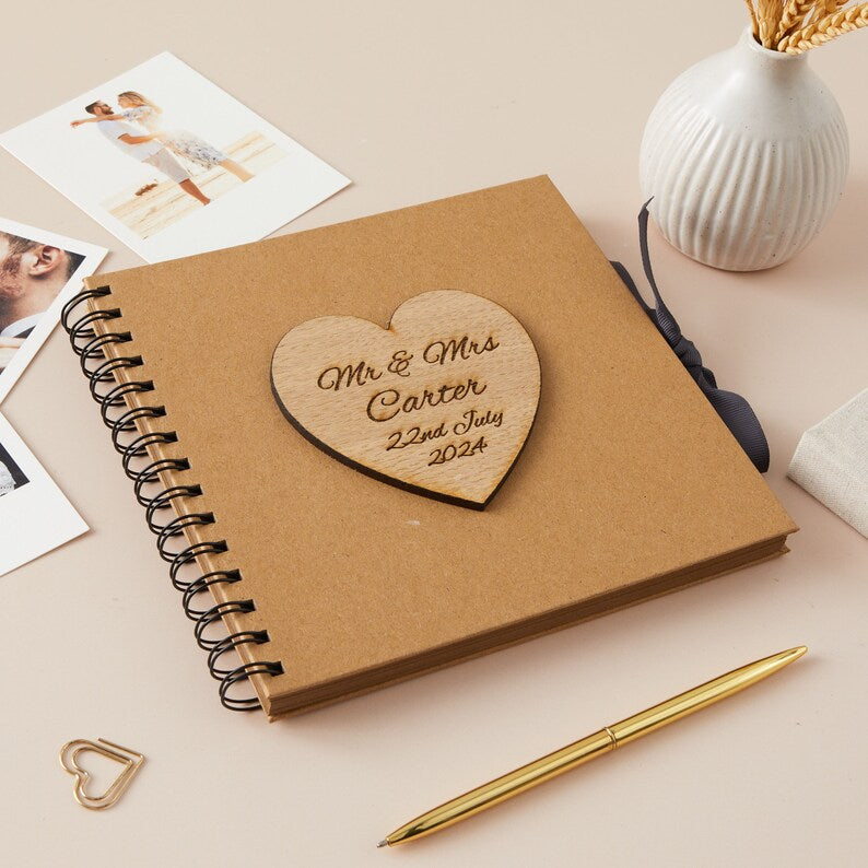 Whether you're looking for a perfect wedding gift or a keepsake for yourself, this Personalised Engraved Wedding Kraft Natural Scrapbook is the ideal choice. Cherish the memories of your special day and create a lasting treasure that will be passed down for generations to come.