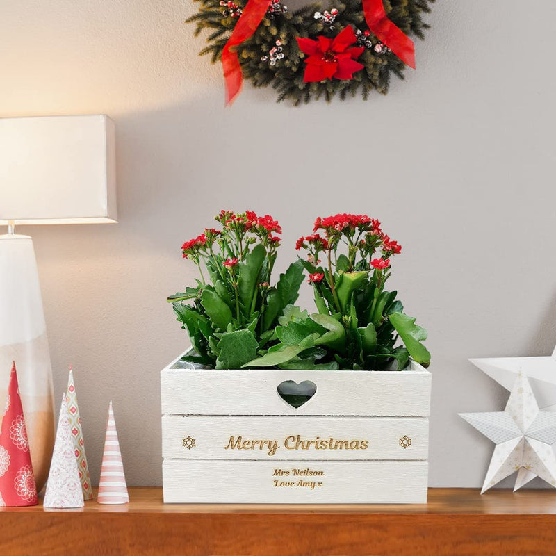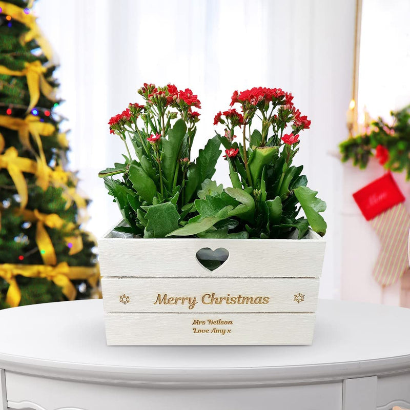 - Personalised Wooden Planter - We engrave any message on the side as shown (please add all the text, including Merry Christmas if that is what you would like.