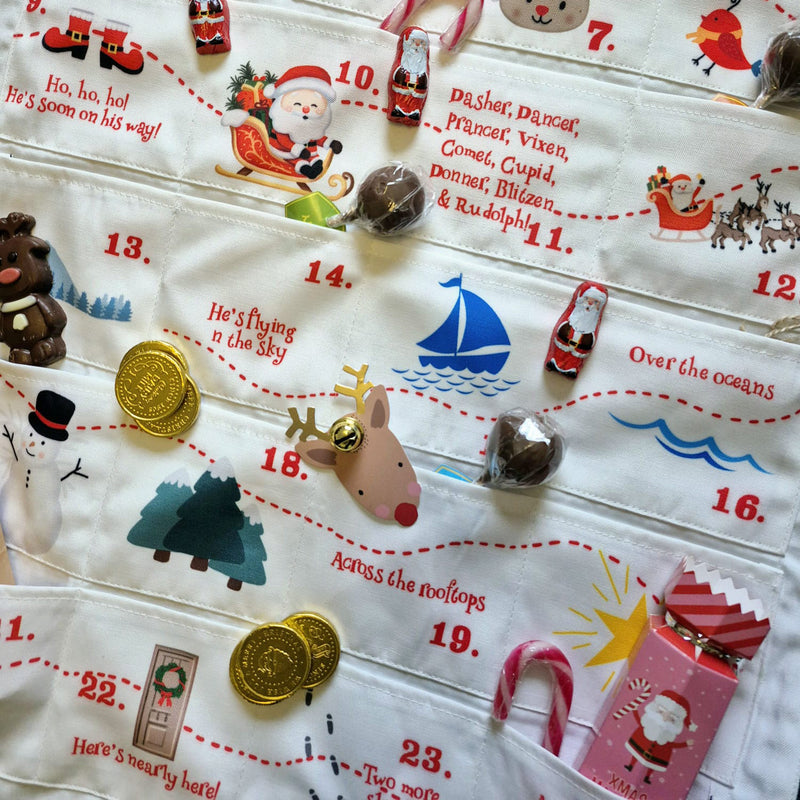 ☃️ ADVENT CALENDAR WITH POCKETS - 24 Pockets of aprox 8x8cm, perfect size for Hero's, celebrations, golden coins, roses, and many other treats. Can be ironed