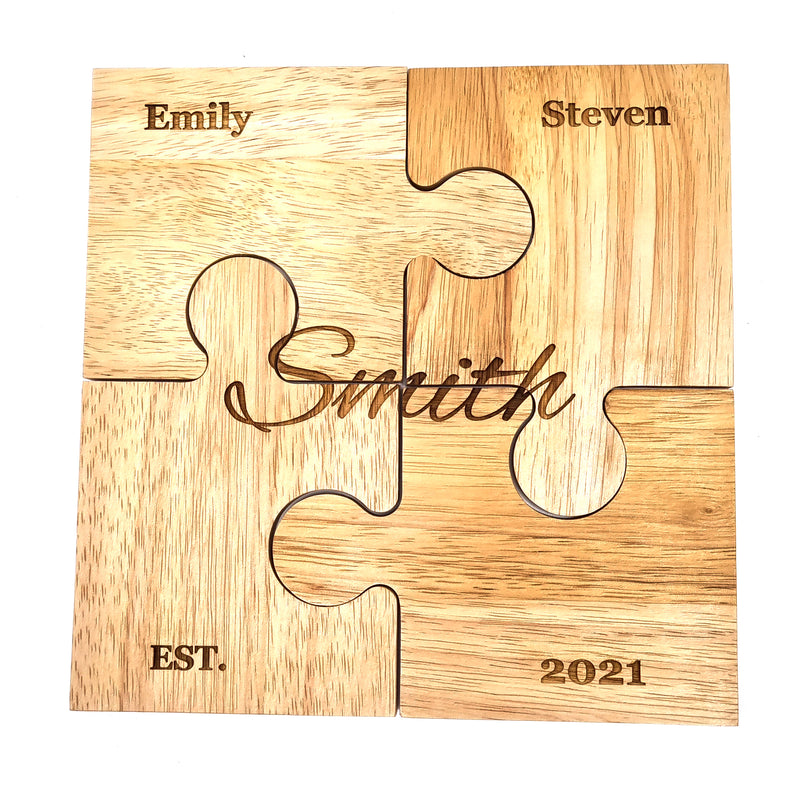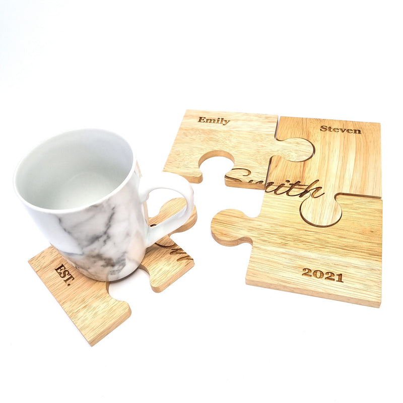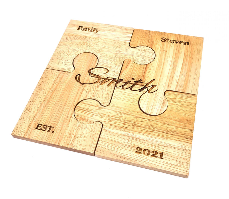 Personalised Jigsaw Wooden Coasters Set of 4 Personalised Wedding Gift Couples Gifts Family Puzzle
