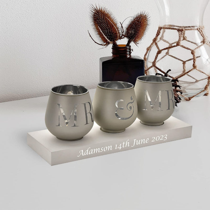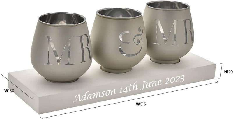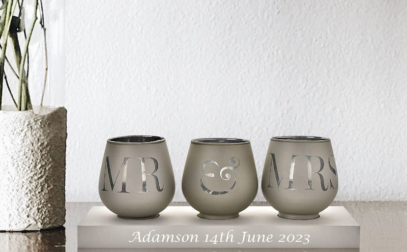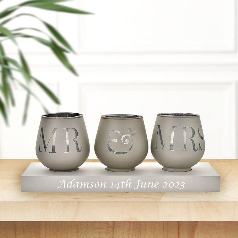 Personalised Rose Gold Wedding Candle Holder - Perfect for Weddings, Anniversaries & Engagements - Trio Mr & Mrs Tea Light Gift