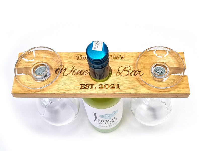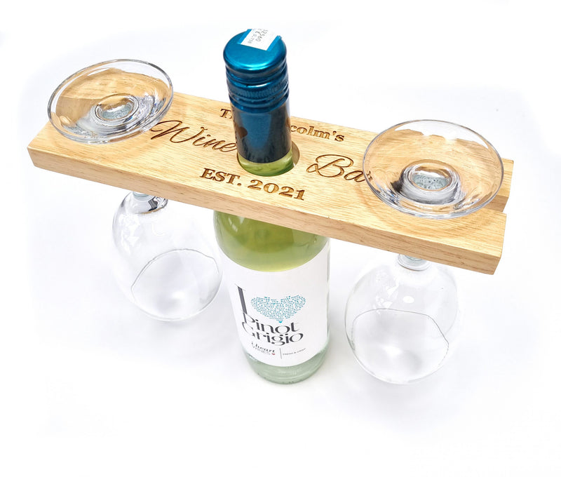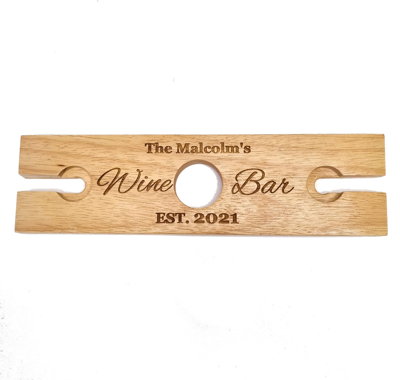 - 🍷 Personalised Wine Holder - Length26 cm Width 7 cm Depth 1.4 cm made from solid rubber wood. Personalise top and bottom Please note "Wine Bar" is fixed text and cannot be changed.