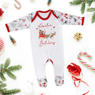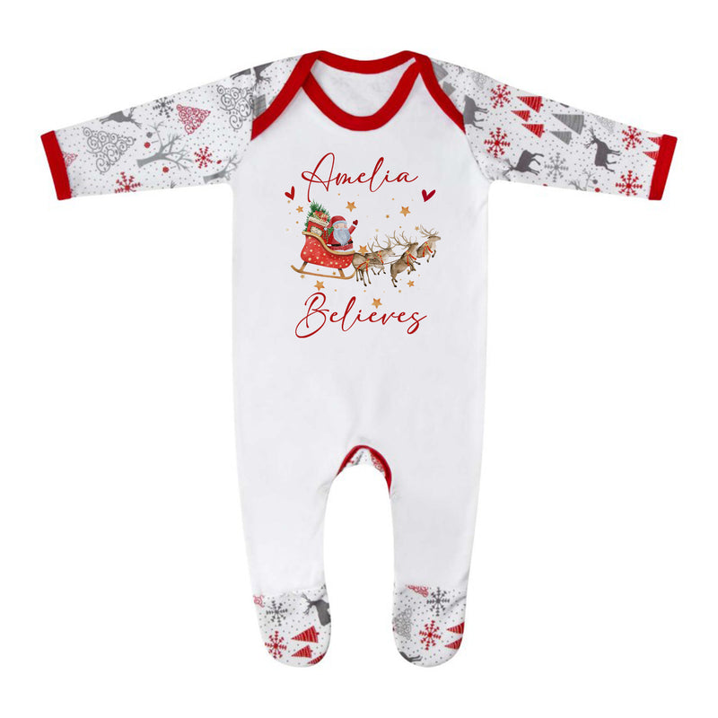 Personalised Christmas Baby Pyjamas & Toddler Xmas Sleepsuit - Babies PJs with Believes Santa Sleigh Design - Perfect for Newborn 1st Christmas