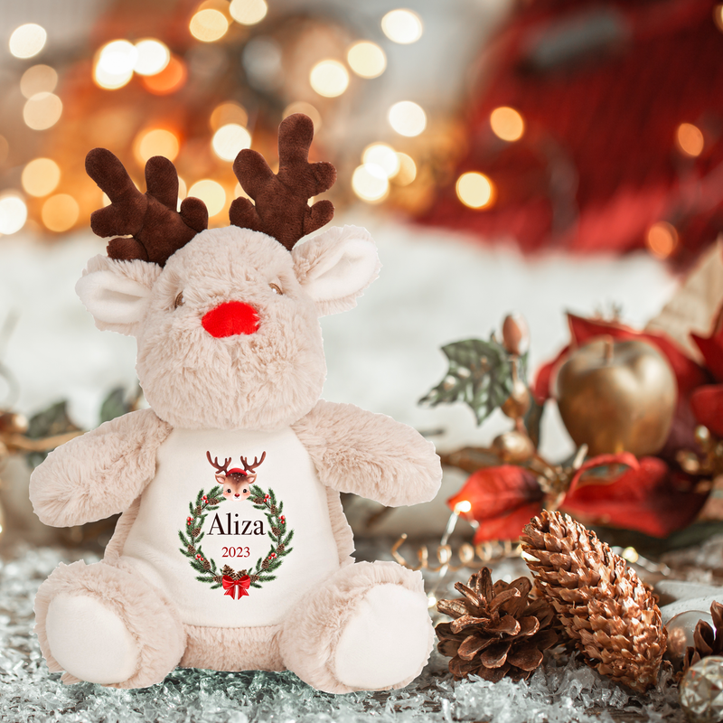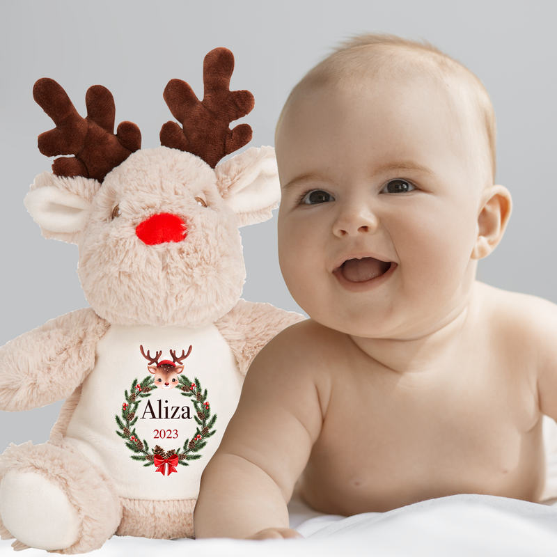 Personalised Christmas Reindeer Teddy Bear: Custom Keepsake Stocking Filler Gift for Girlfriend New Baby, Toddler