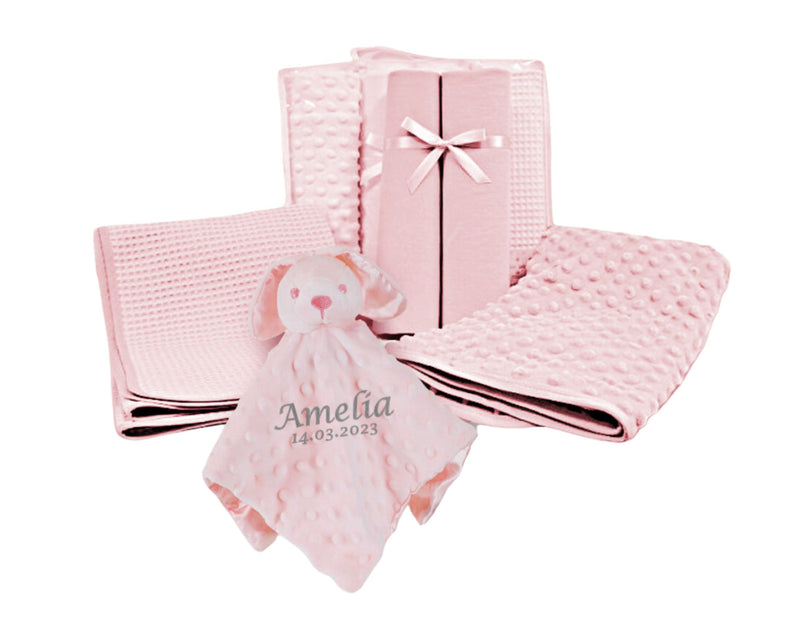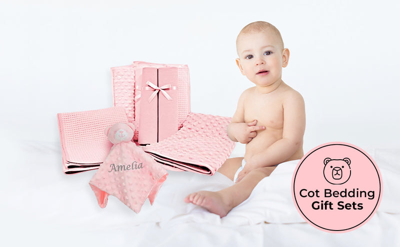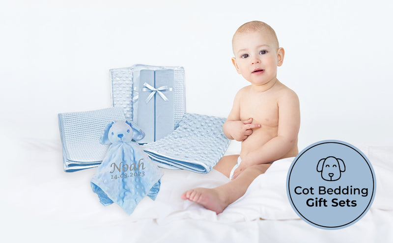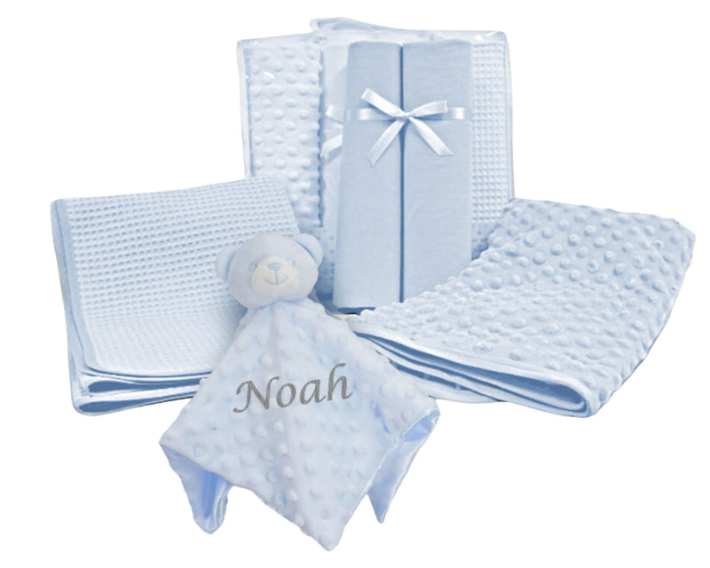 Personalised Embroidered Newborn Baby Cot Bedding Set Blanket Sheets Comforter Large Gift Box | Perfect Baby Shower Gift for Girl or Boy