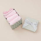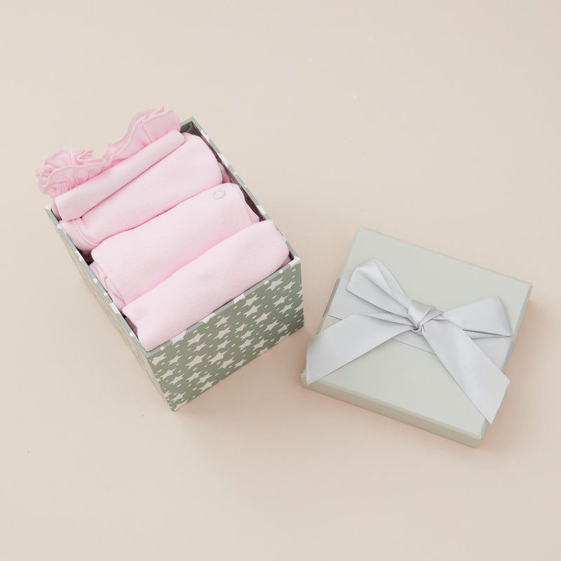 Personalised Pink 5-Piece Newborn Baby Girl Gift Set - Grey Bunny Design, Includes Sleepsuit, Bodysuit, Bib, Hat, Mittens in Cube Gift Box
